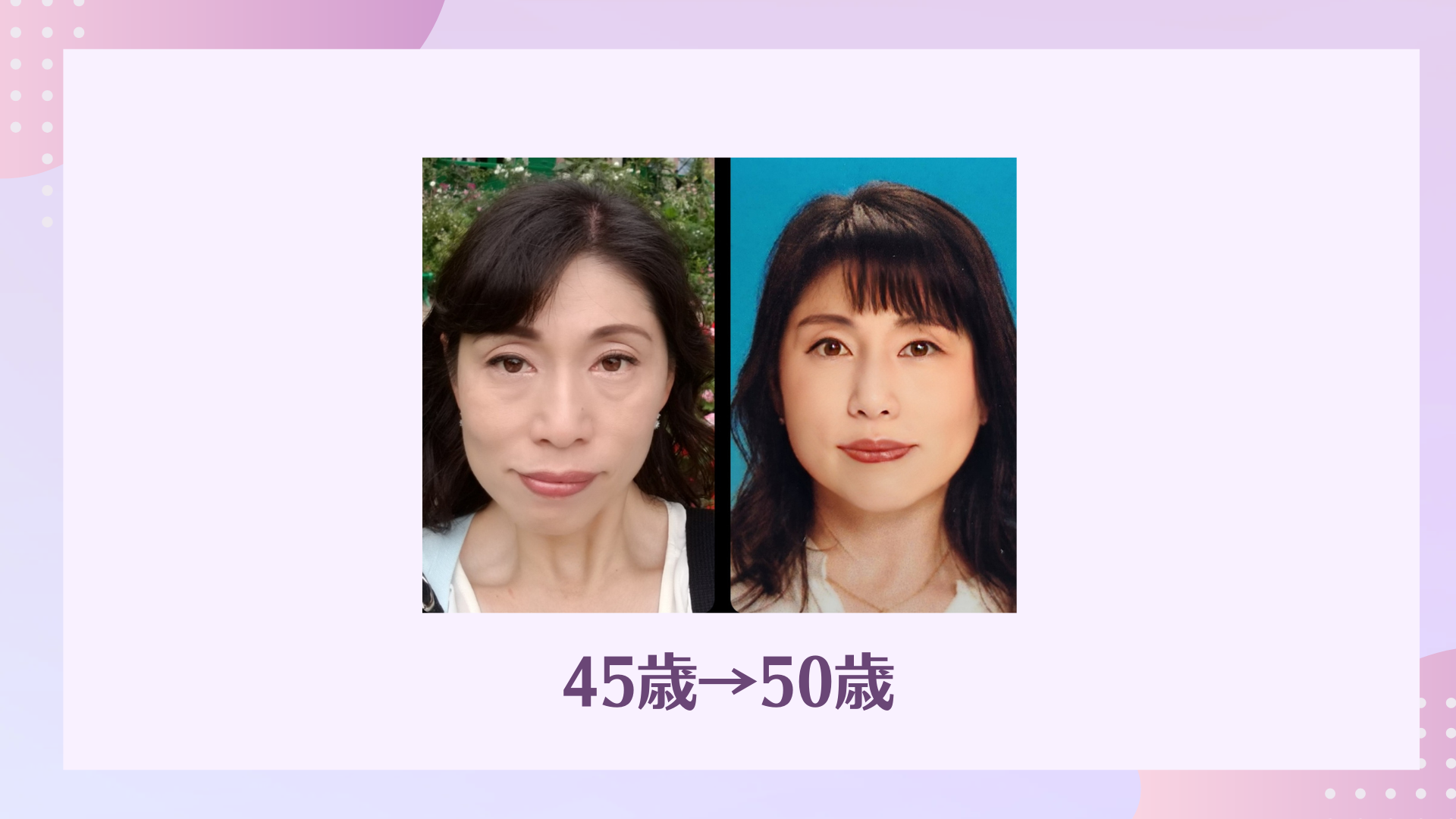 私、ビフォーアフターを見ておっきな「ぇえええええ!?」が出ました!!!人ってこんなに顔買われるの!?整形じゃないよね!?し・か・も!このビフォーアフター写真は45歳で海外旅行に行って全力で楽しんでいる笑顔、からの50歳の不意打ち証明写真!後者の方が笑顔が柔らかくって楽しそうってどうゆうこと!!?って思いません?こんなお話を笑い話として織り交ぜてくれるさなえさんのお人柄も本当に関わりやすいし、自分の気にしていることのぶっちゃけ話もとてもしやすいです!韓国コスメのある韓国在住の方も、さなえさんに相談に来たりと、本当に悩んでいるところがある人に、めちゃくちゃ大事な話をしてくれる方だと思うので、ぜひ画面越しに会いに行ってみて欲しいです!よろしくお願いします!