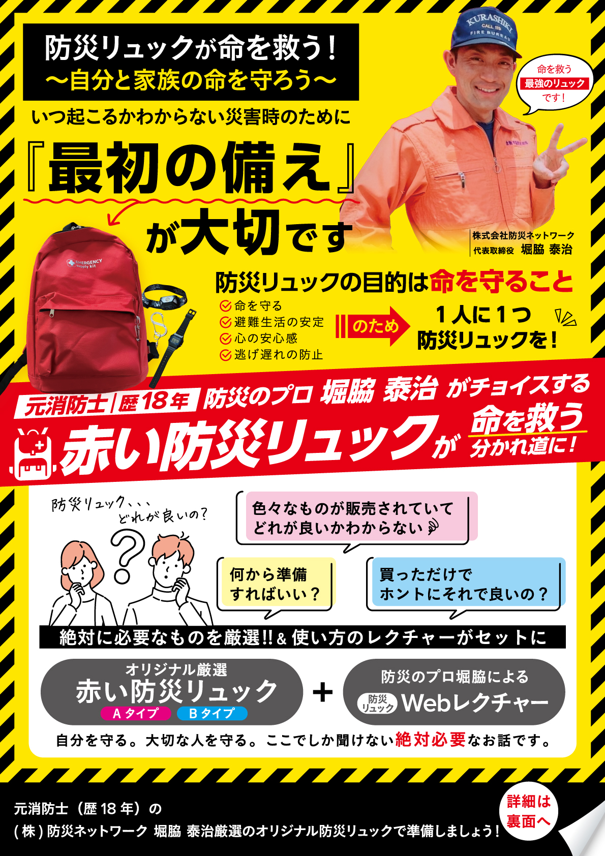 18年勤めた元消防士監修の絶対間違いないオリジナル防災リュック