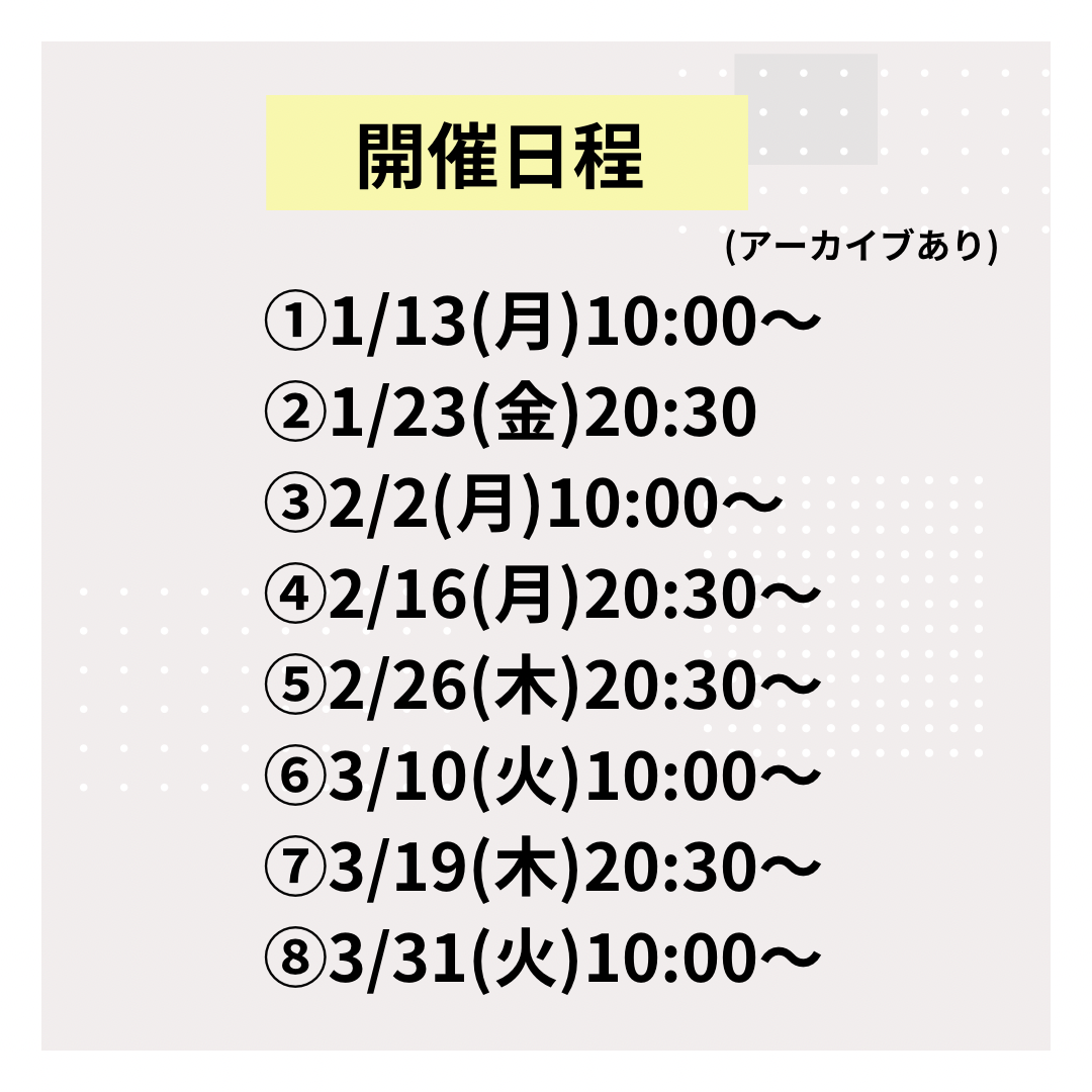 ・アーカイブ視聴出来ますので日程が合わない方にもご安心ご参加いただけます😊