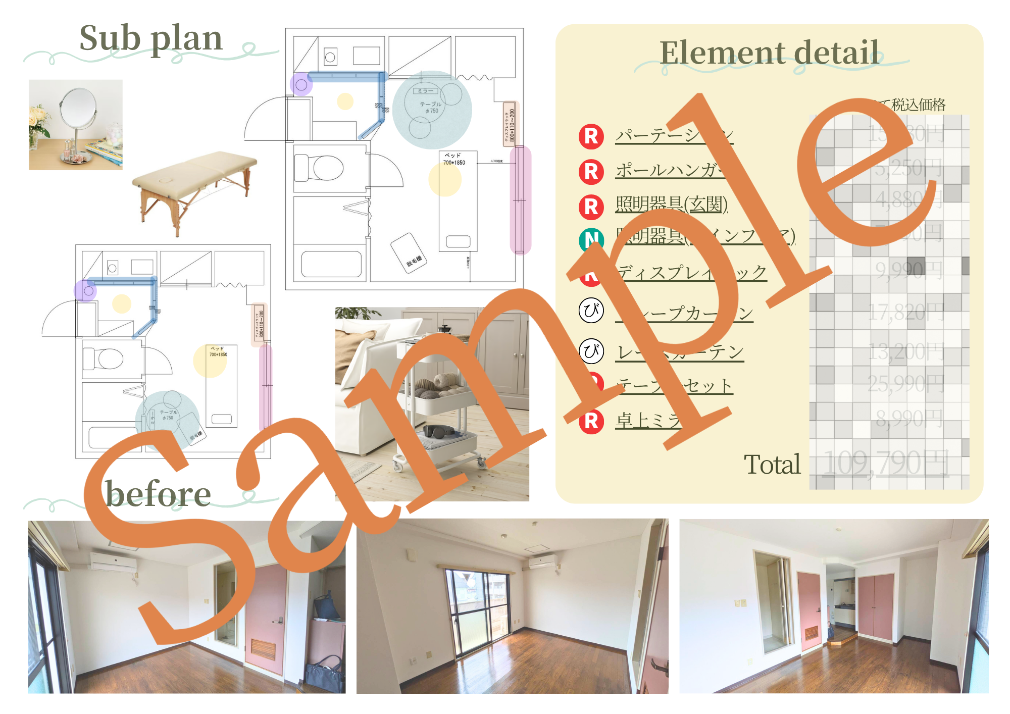※提案させていただくインテリアアイテム(ソファやドレッサー、カーテンなど)は、お客様の採寸・写真をもとに選定させていただきます。実際の納入時に「寸法が合わなかった」「色味が合わなかった」場合の保証はできかねますので、ご了承ください。