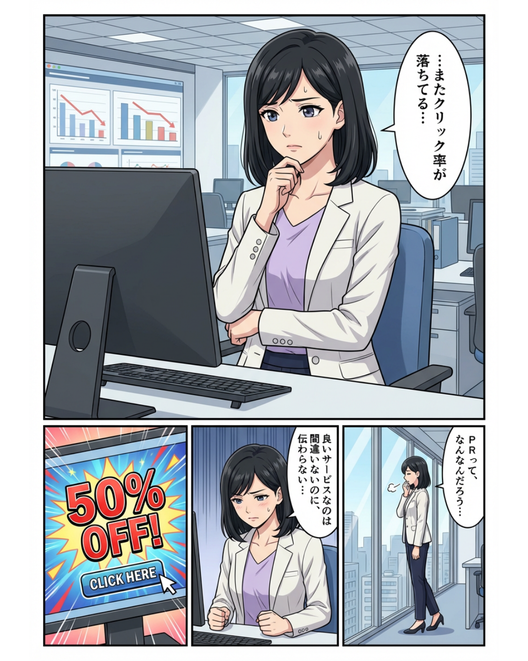 PR文を毎回考えなくても、マンガを載せるだけで説明が完結。