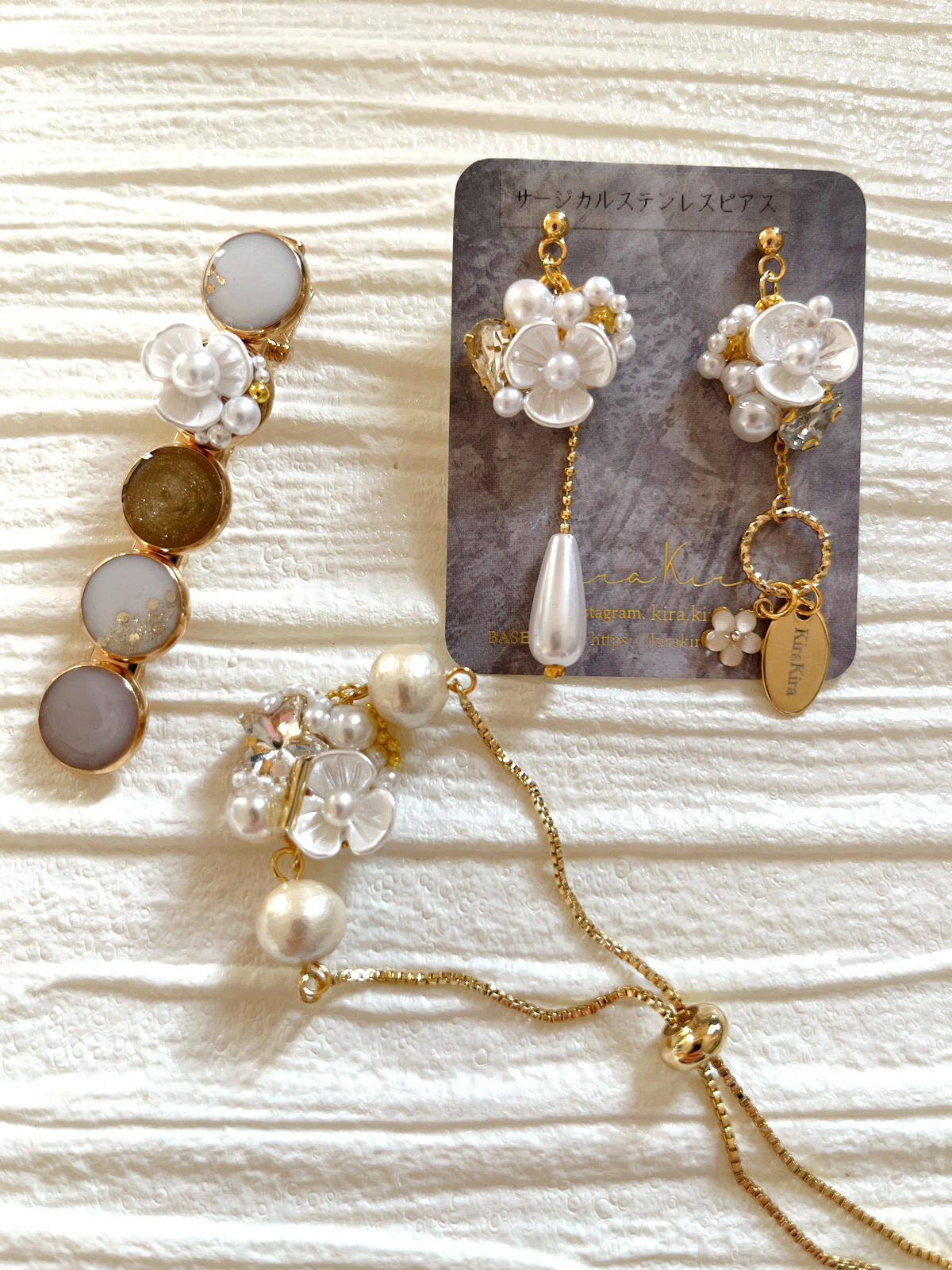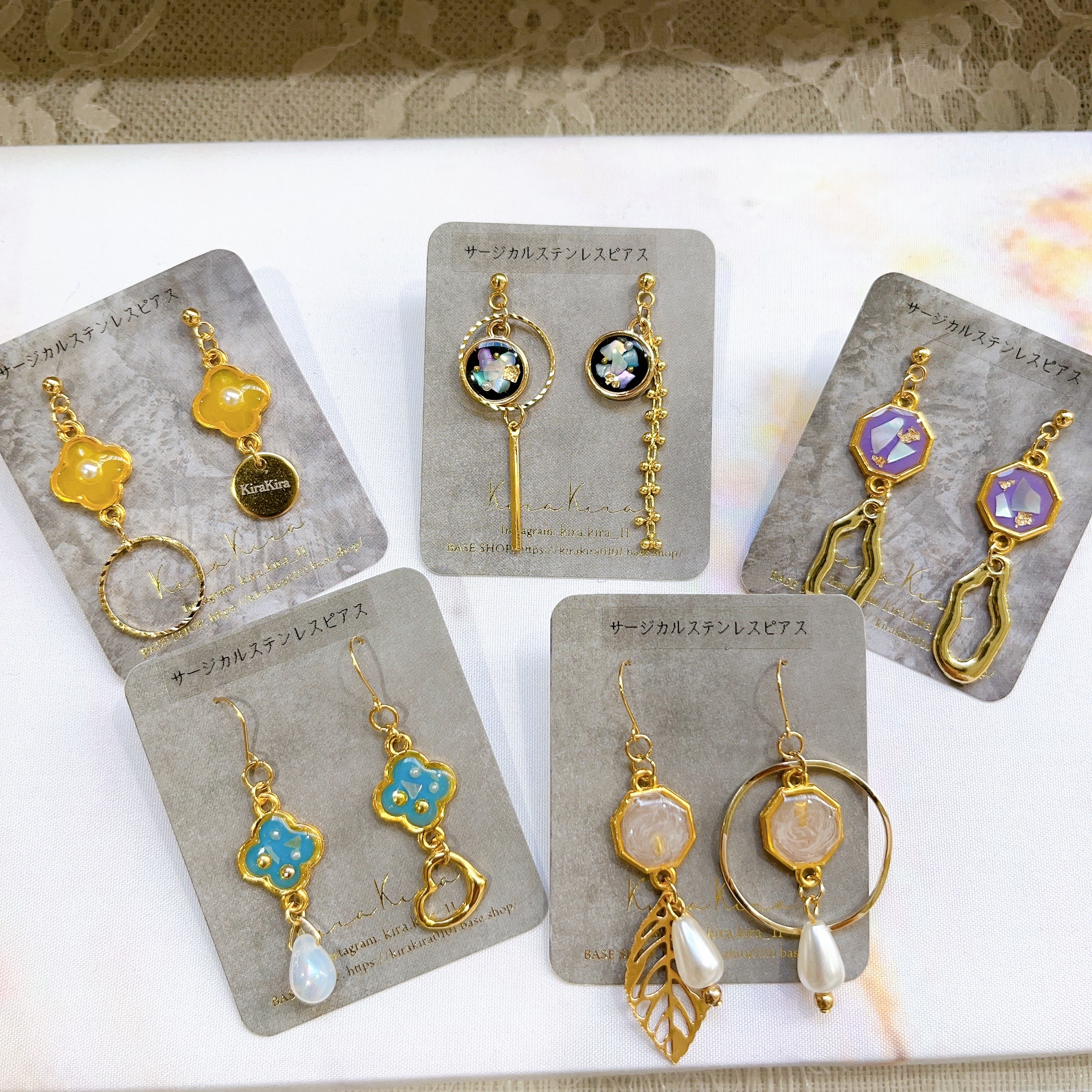 オーダー可能な商品はピアス、イヤリング、ヘアクリップ、バレッタ、ブレスレットです。