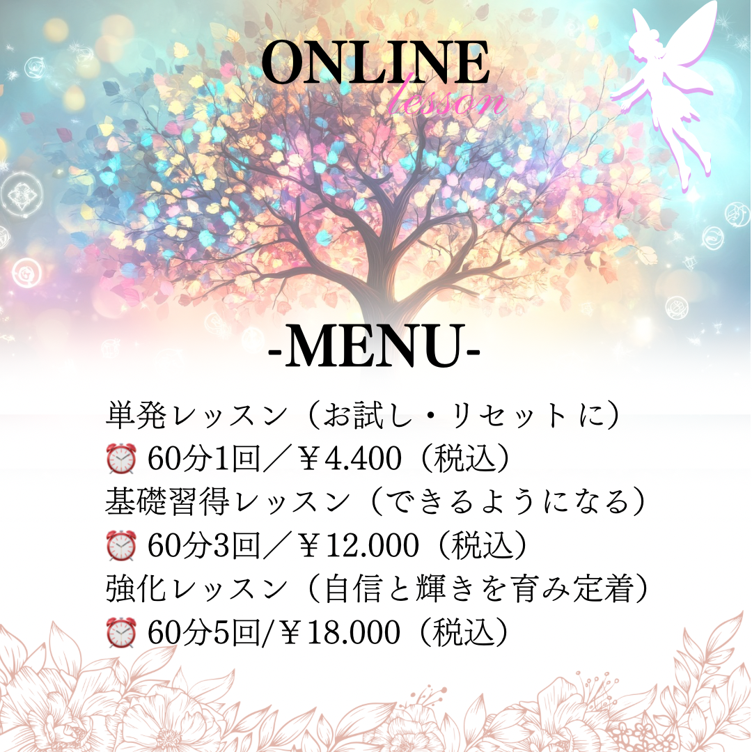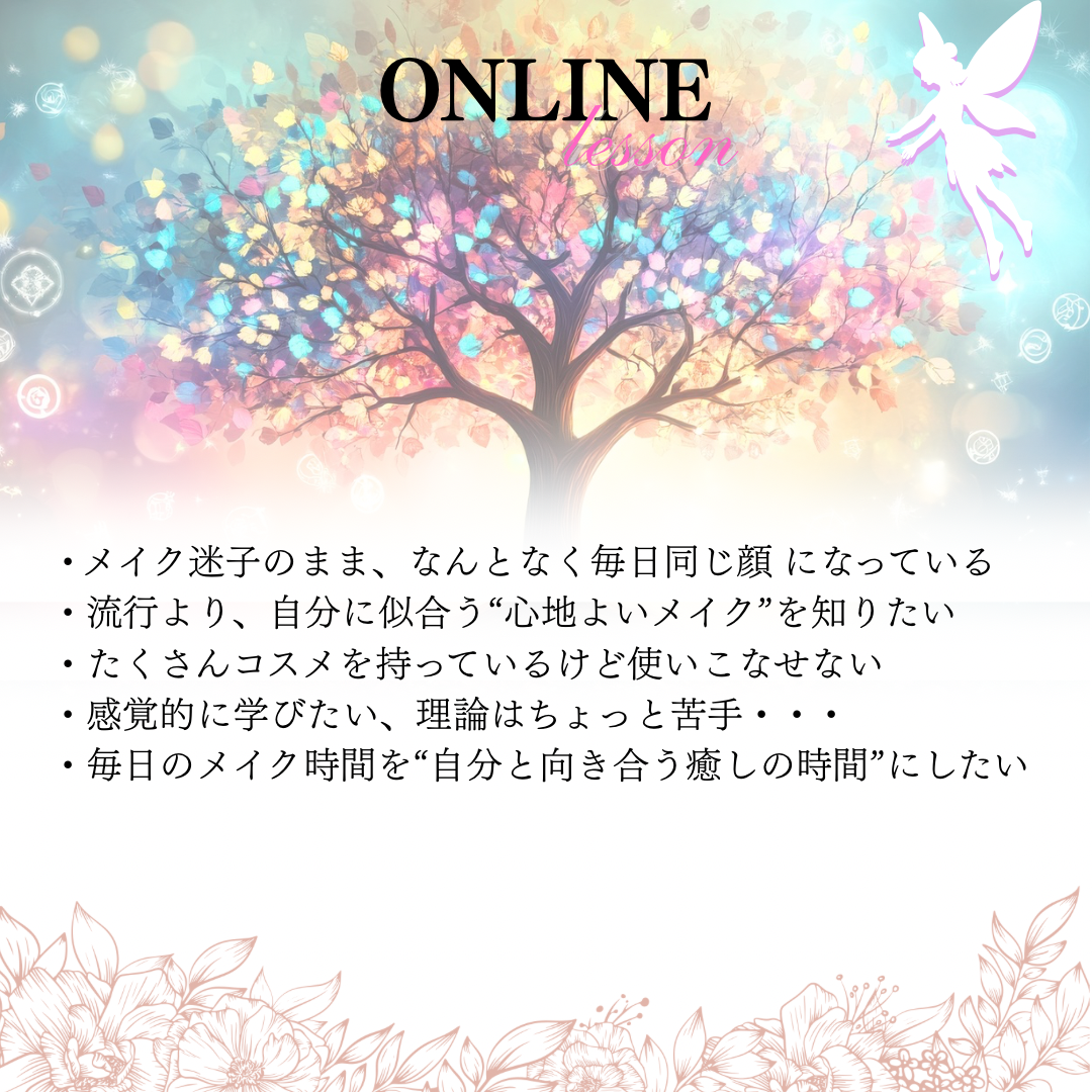 ・オンライン/対面の場合は環境(鏡・明るさ等)のご準備をお願いいたします