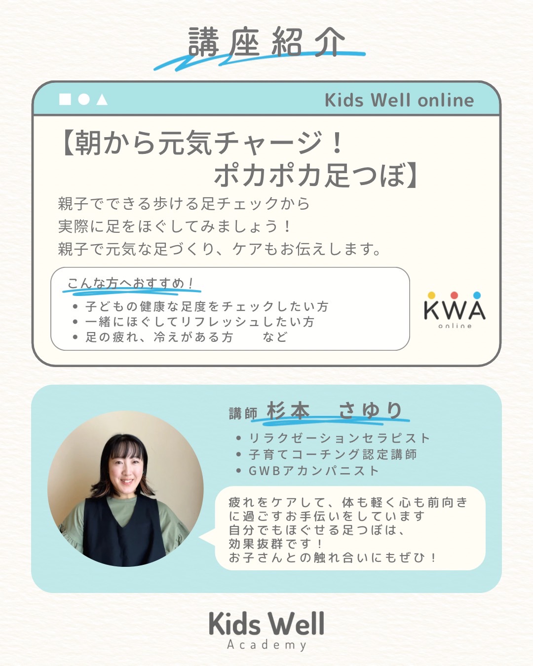 *初心者でも子どもの足と自分の足のケアを知ることができます。