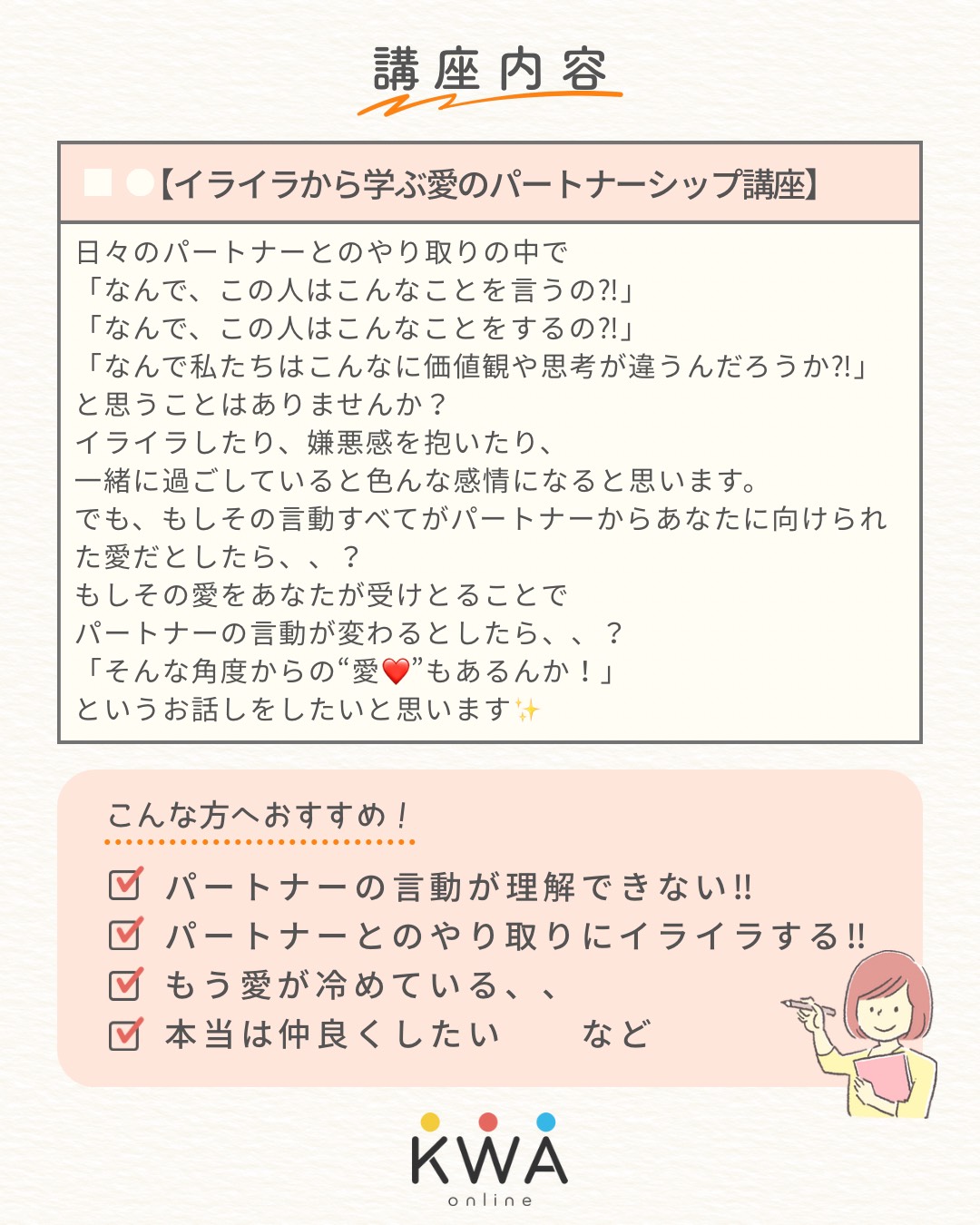 ✅パートナーとの関係でイライラ、モヤモヤしている方