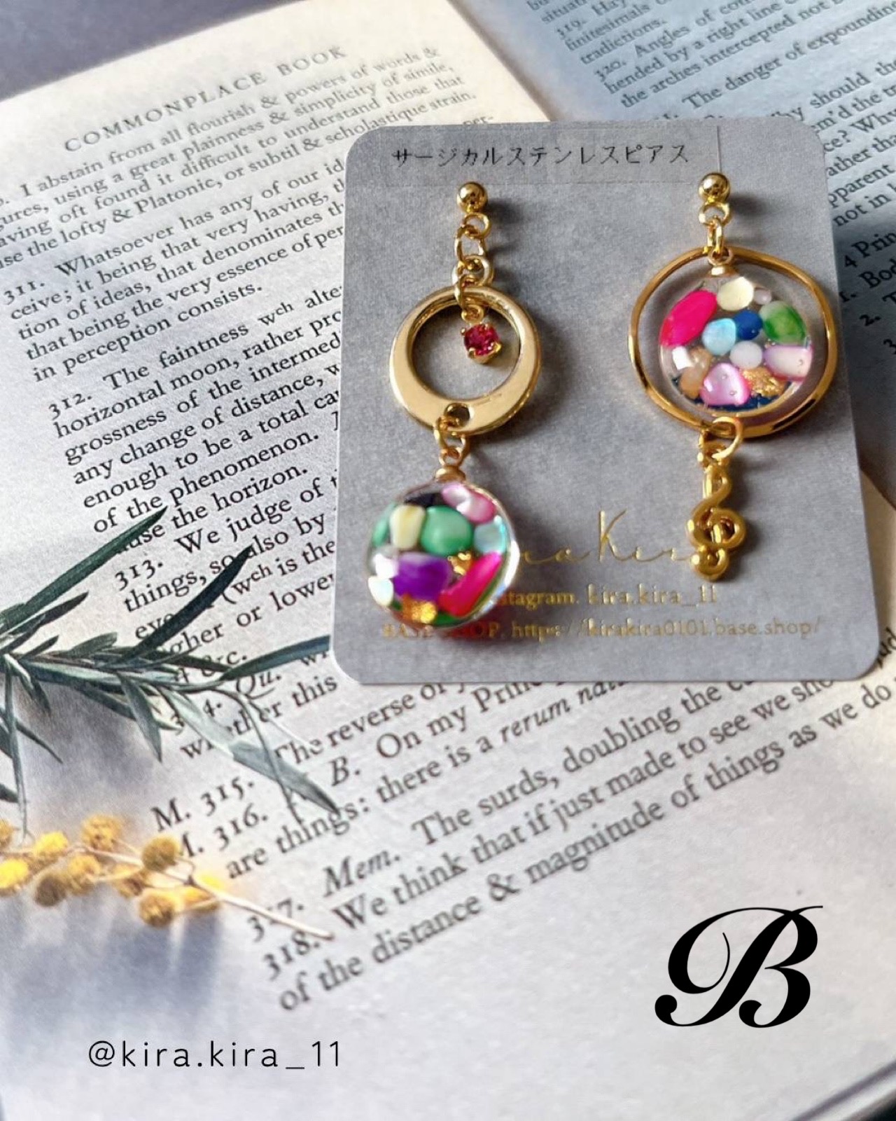 普段使いもできるカラフルでキラキラなレジンアクセサリーです。
