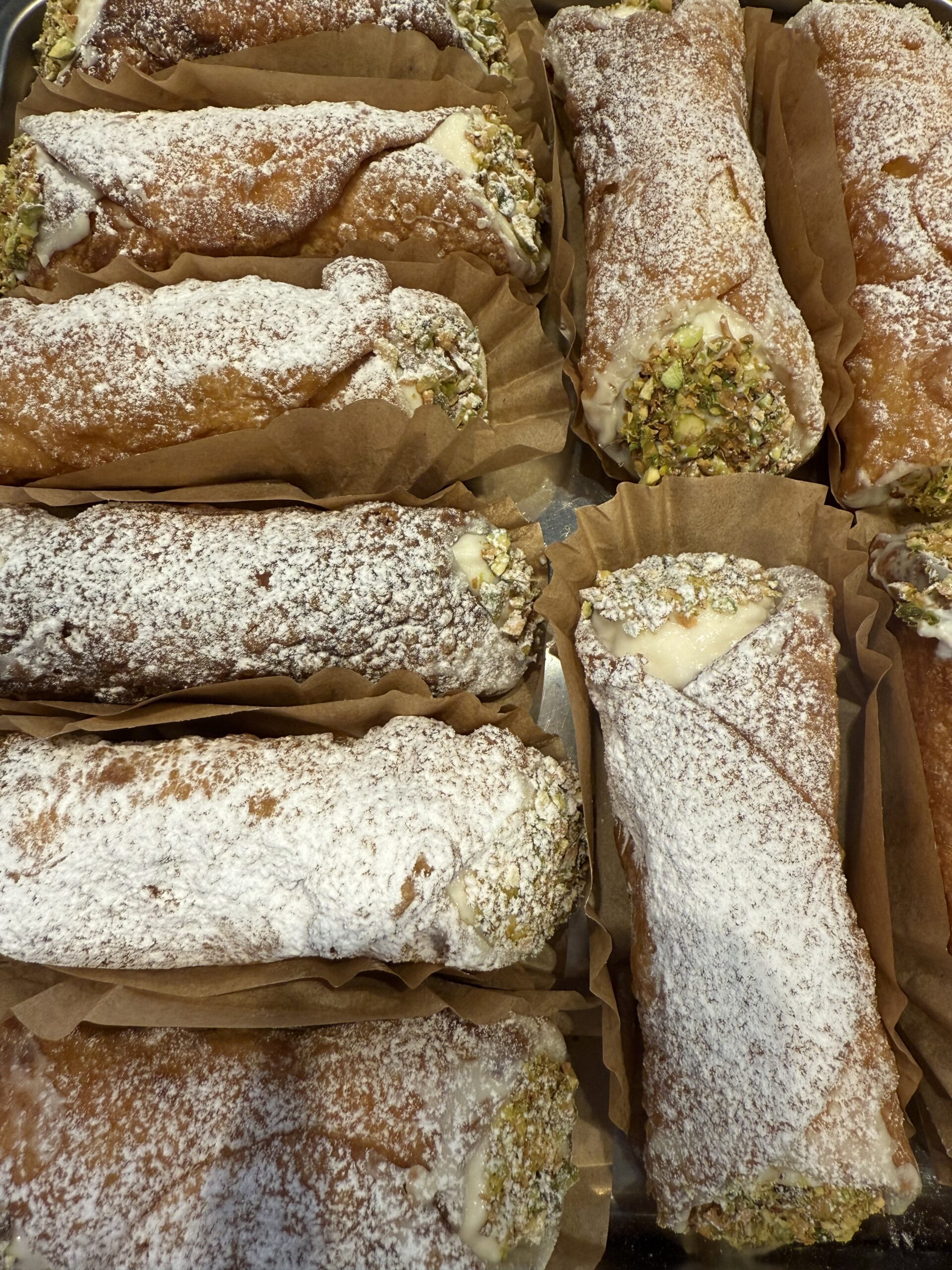 カンノーリは筒状(カンノーロ)の生地に、シナモン・オレンジピール風味のリコッタチーズのクリームがたっぷり入っています❤️