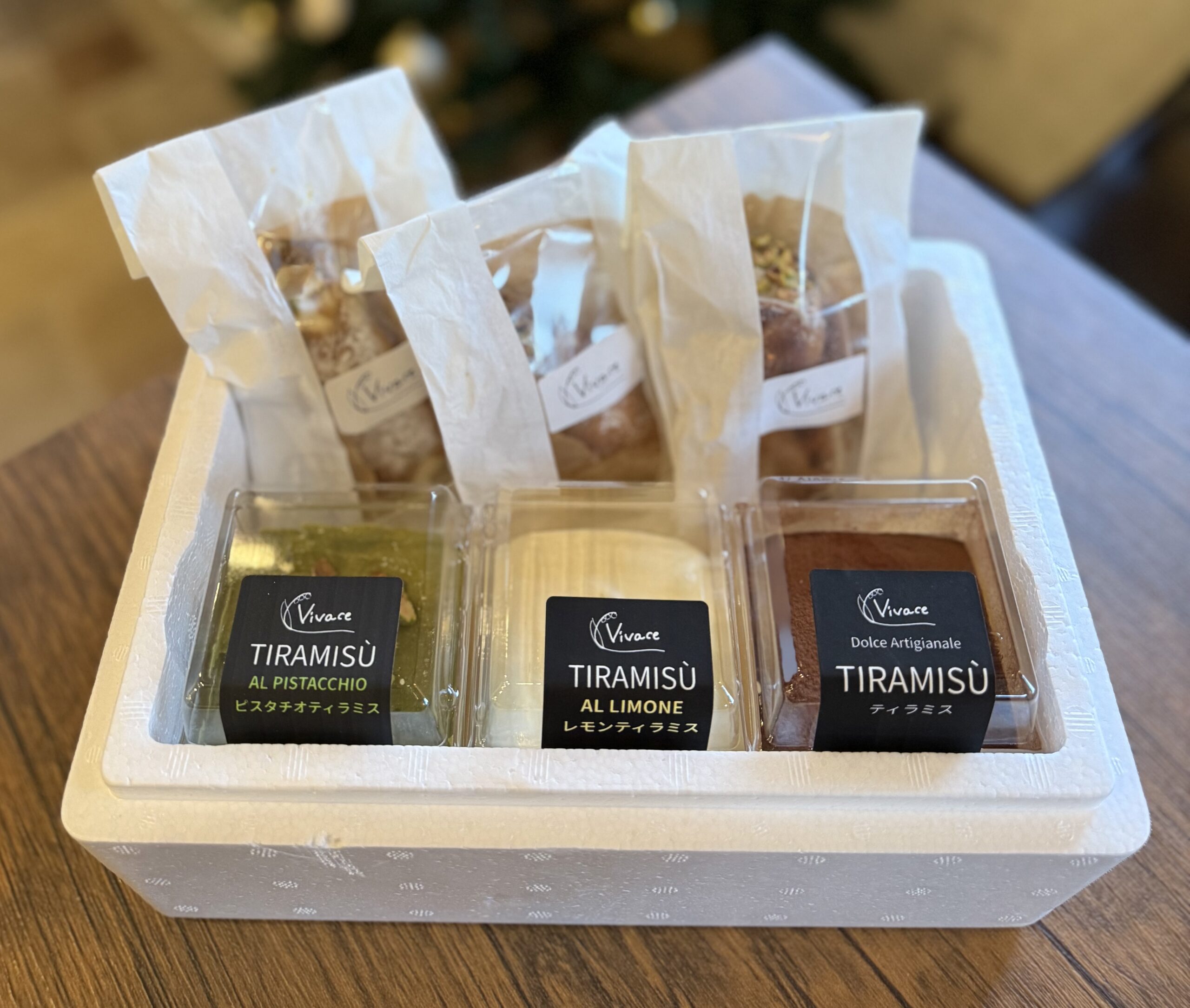 イタリアでは定番のティラミスとシチリアの伝統菓子カンノーリの詰め合わせです。