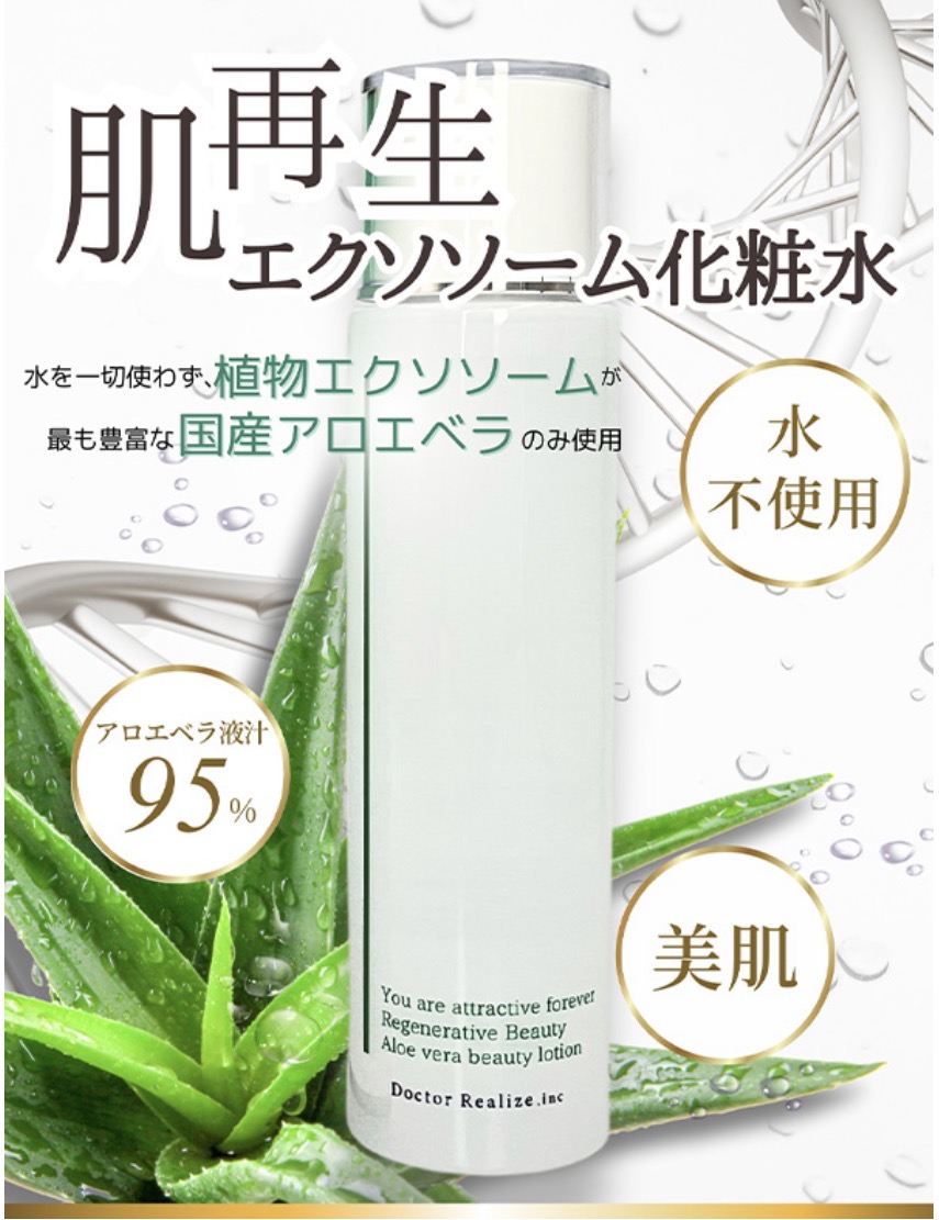 ミネラル成分をたっぷり含んだ宮古島産アロエベラを使用。水不使用のため、植物由来のエクソソームを肌から体内に取り入れることができます♬