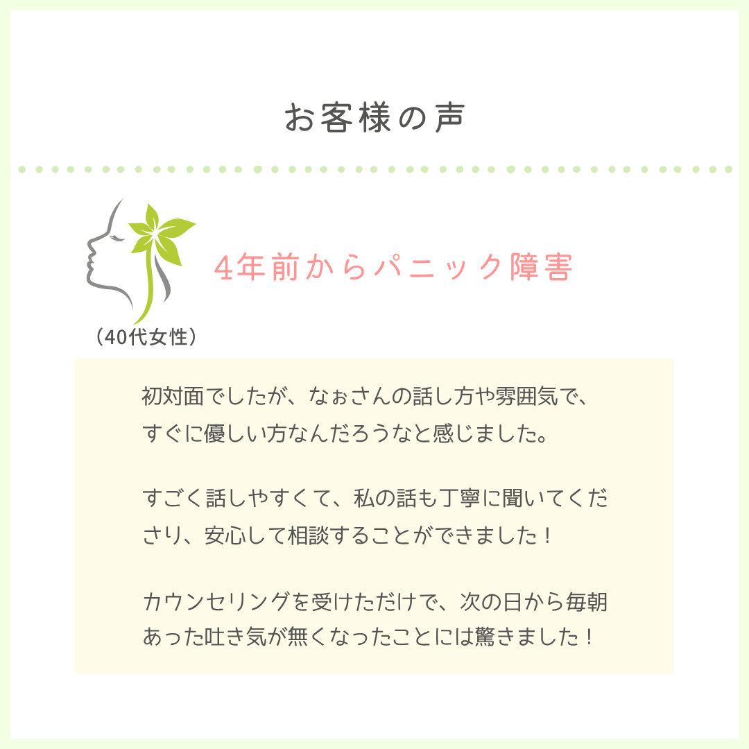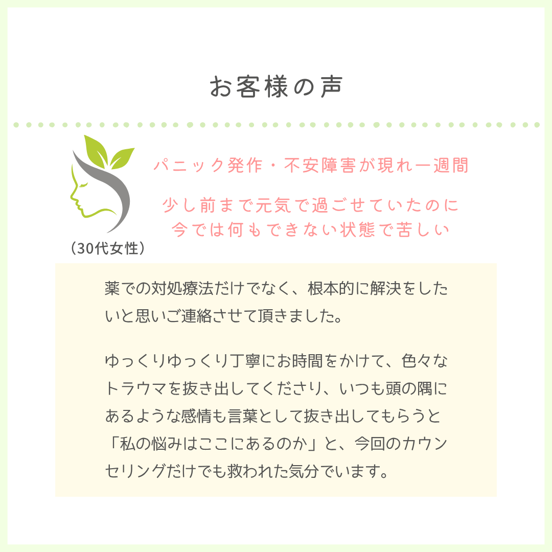 こちらの初回カウンセリングのみ受けるだけでも、価値があるというお言葉をいただきます🌱
