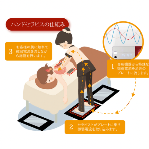 微弱電流が流れる感じは心地の良い感覚を感じていただけます。
