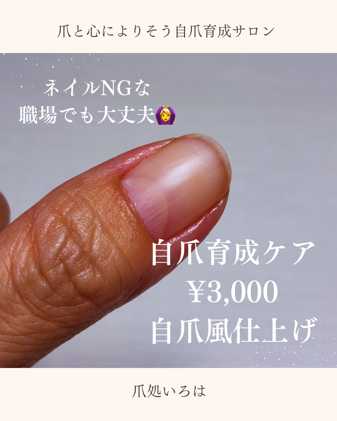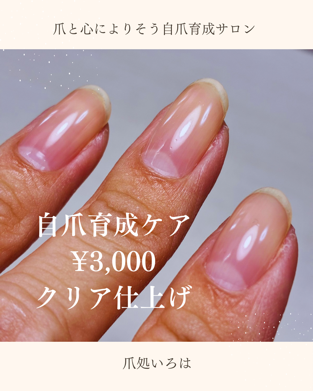 当サロン【爪処いろは】は、繰り返す爪噛み・むしり癖など、爪のお悩みによりそい伴走しながら爪を育てていく自爪育成サロンです。