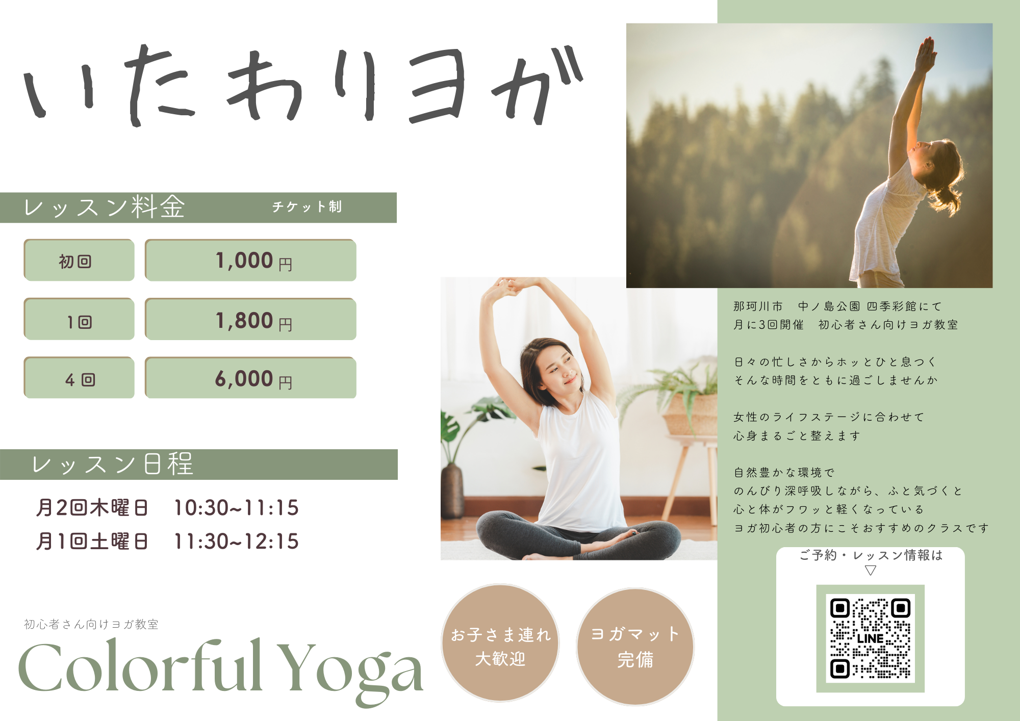 ※1回チケットをご希望の方は「いたわりヨガ 1回」をご選択ください