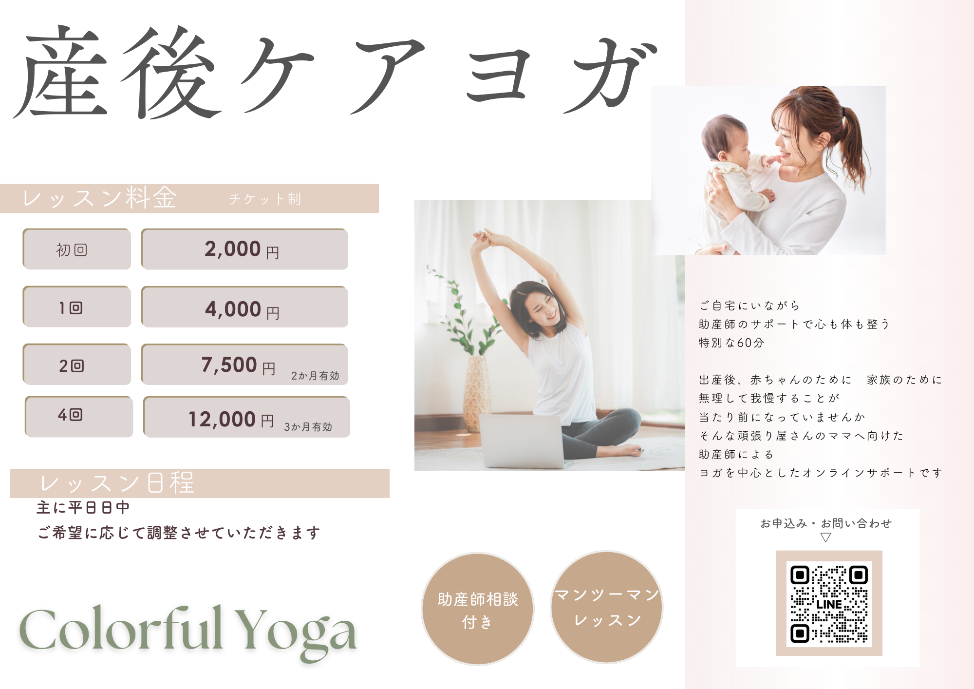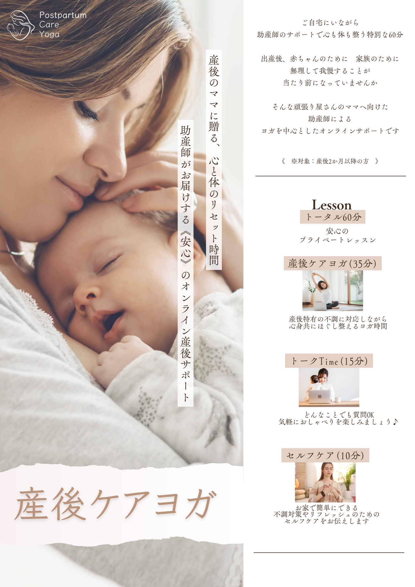産後特有の不調に対応しながら、心身共にほぐし整えるヨガ時間