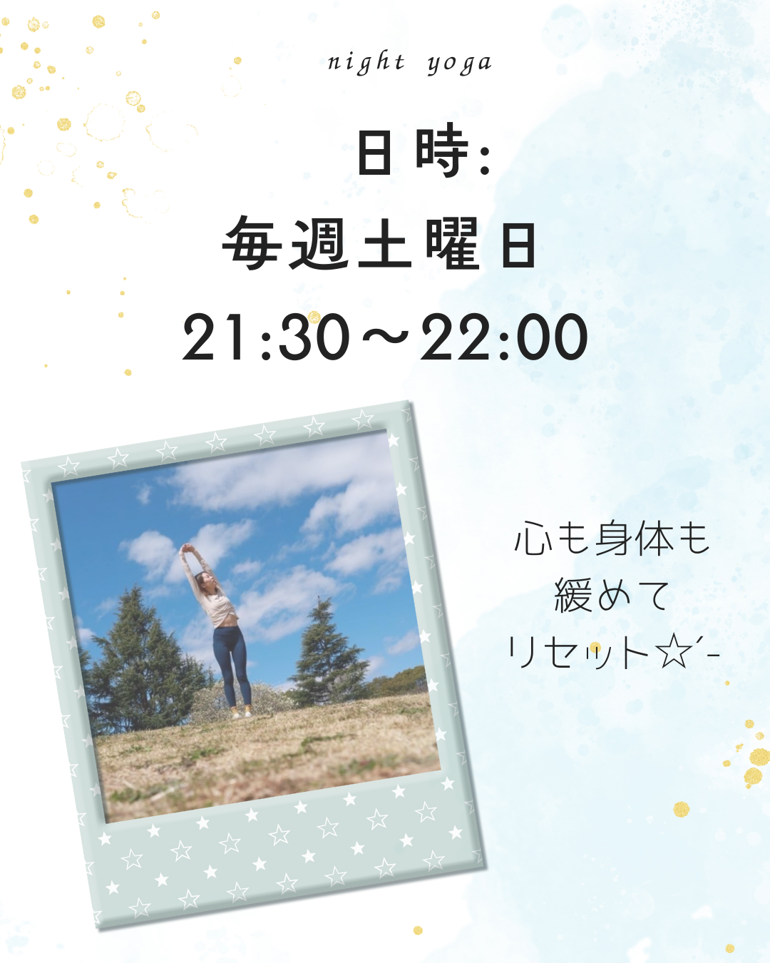 1日の疲れをほどくナイトヨガ【無料】30分/毎週土曜日21:30〜22:00