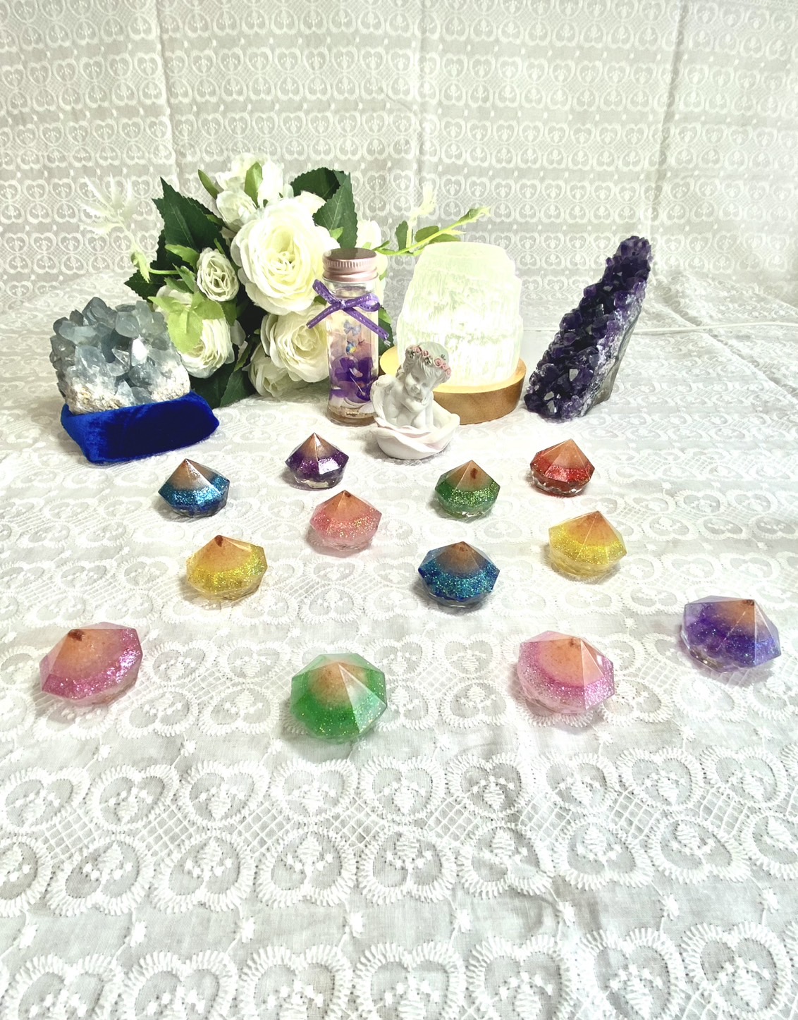 『シハーブの雫』と名づけました。クリスタルに合わせてそれぞれの色合いに仕上げ、輝きがどれも違います。