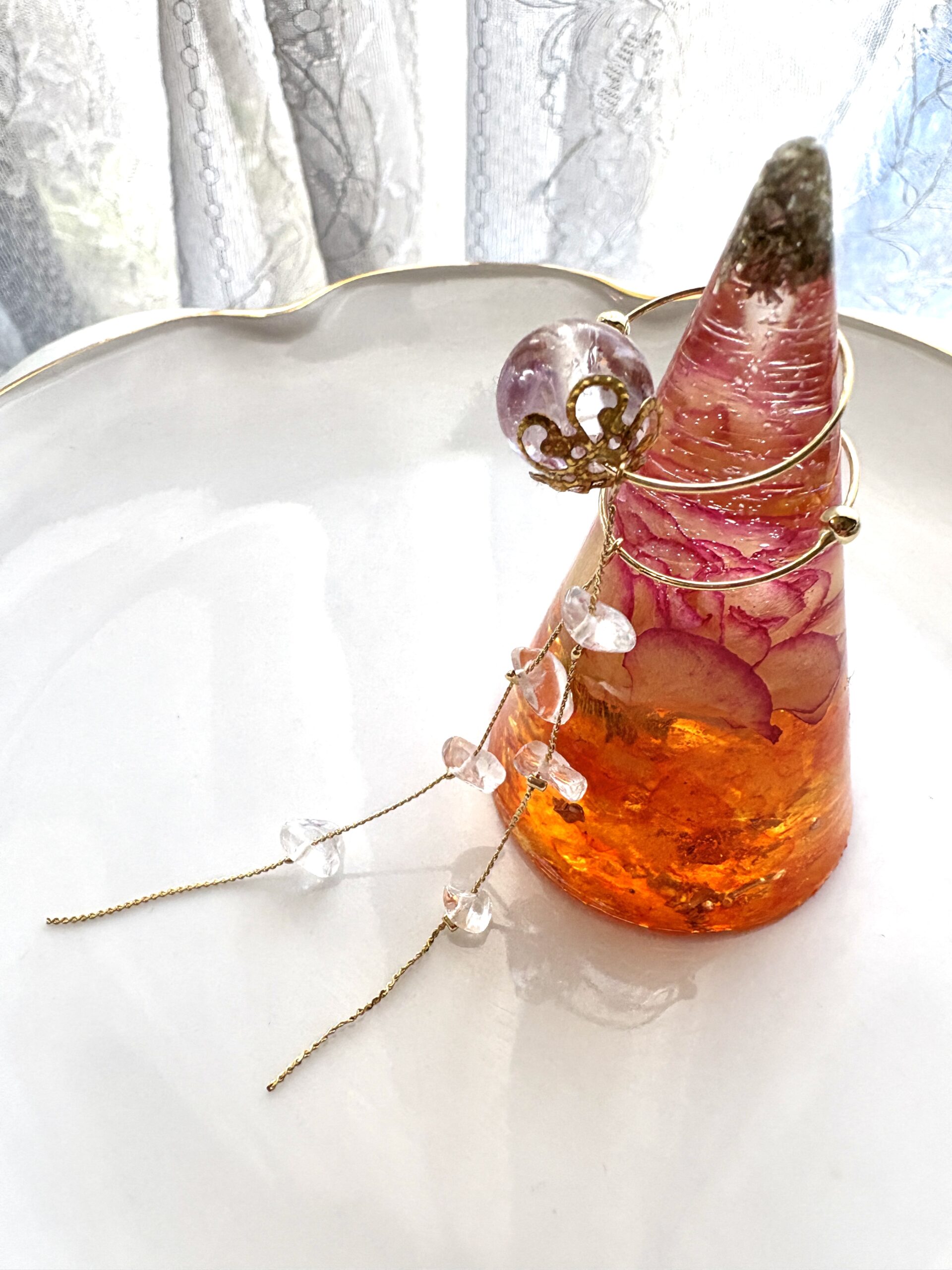 耳つぼにあたる部分、もしくは、カフにオルゴナイトを使用しているので、電磁波避けに効果があるとされています。
