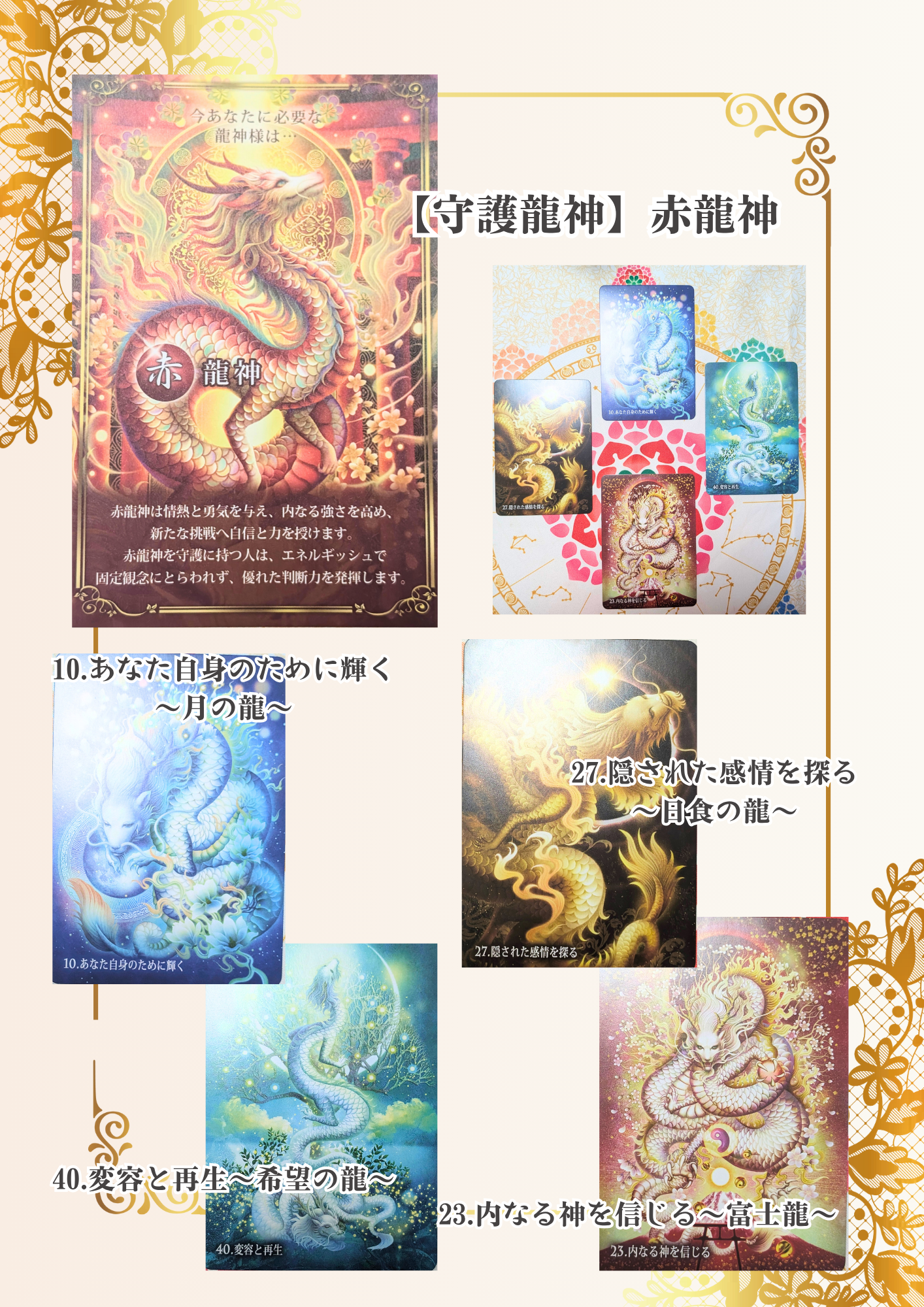 「光の龍神カード」は、龍神からの力強いメッセージと深い導きを届けます。困難な状況でも、あなたを照らし、真実へと導いてくれます。龍神の光が心の奥に眠る真実を引き出し、人生の岐路で正しい方向を示します。光の龍神カードは、あなたの成長と変容をサポートし、新たな未来への扉を開く力強いパートナーです。