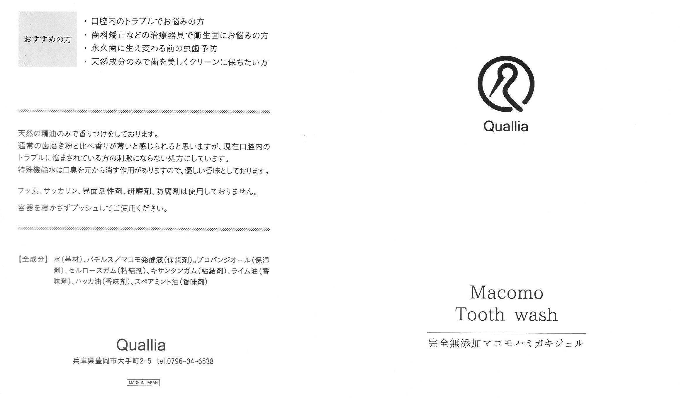 フッ素、サッカリン、界面活性剤、研磨剤、防腐剤は使用しておりません。
