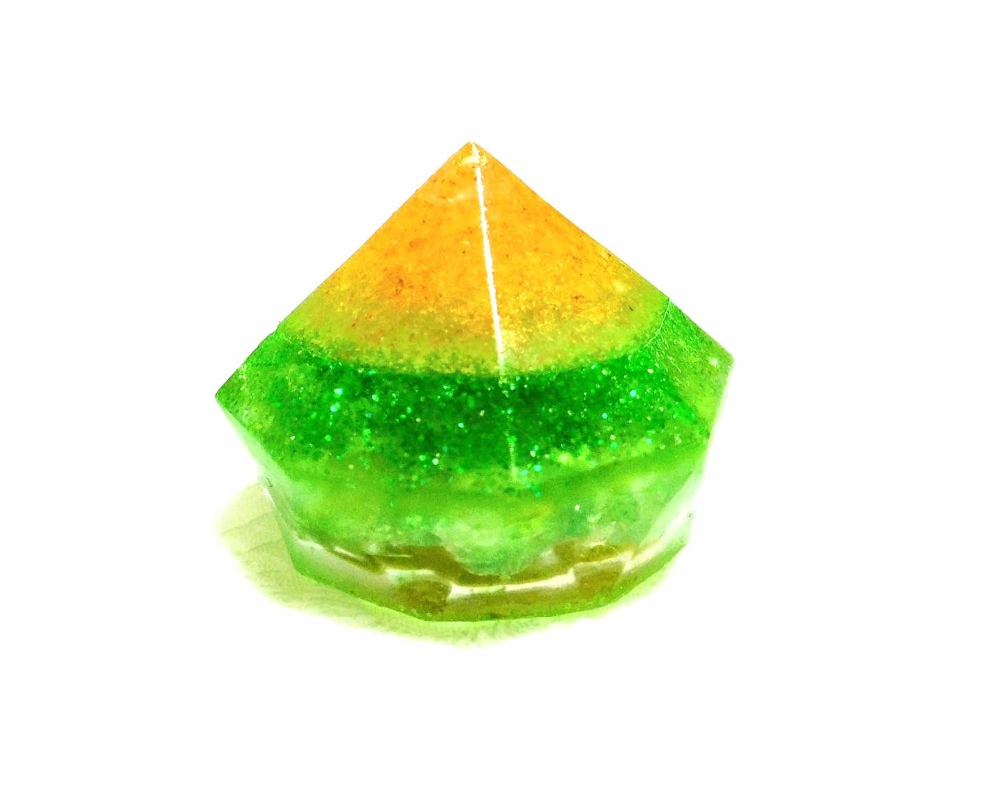 ヒマラヤ岩塩の盛り塩とクリスタルを合わせて、縁起の良い八角すいの小さなお守りに仕上げました。
