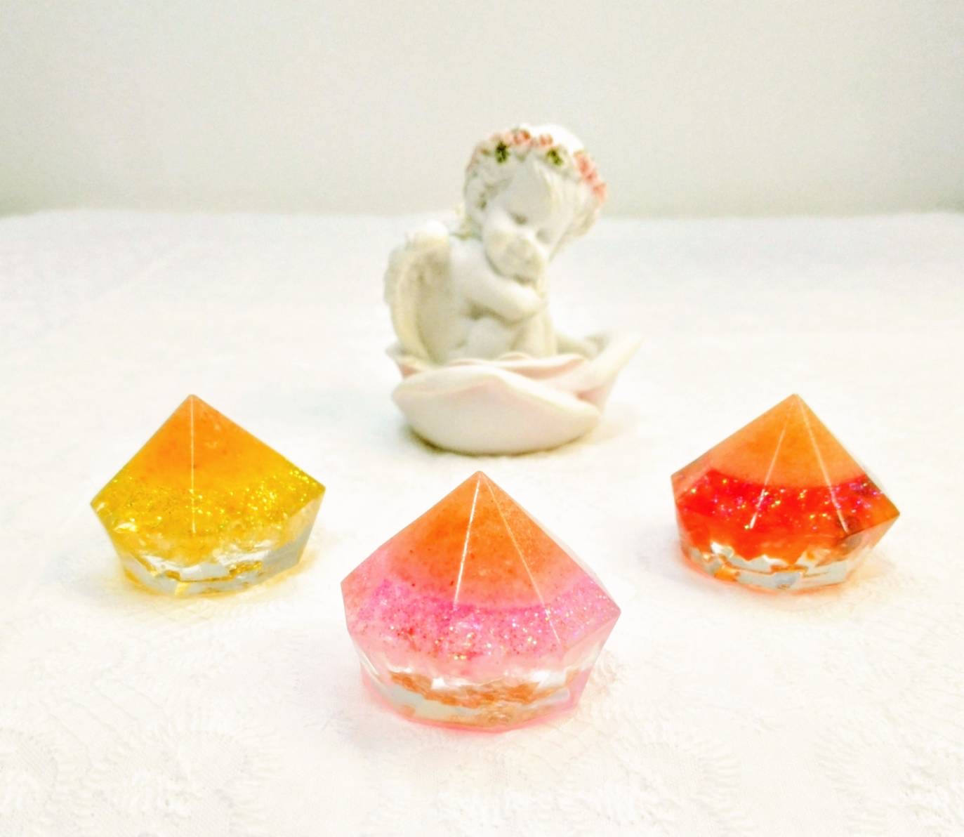 ヒマラヤ岩塩の盛り塩とクリスタルを合わせて、縁起の良い八角すいの小さなお守りに仕上げました。