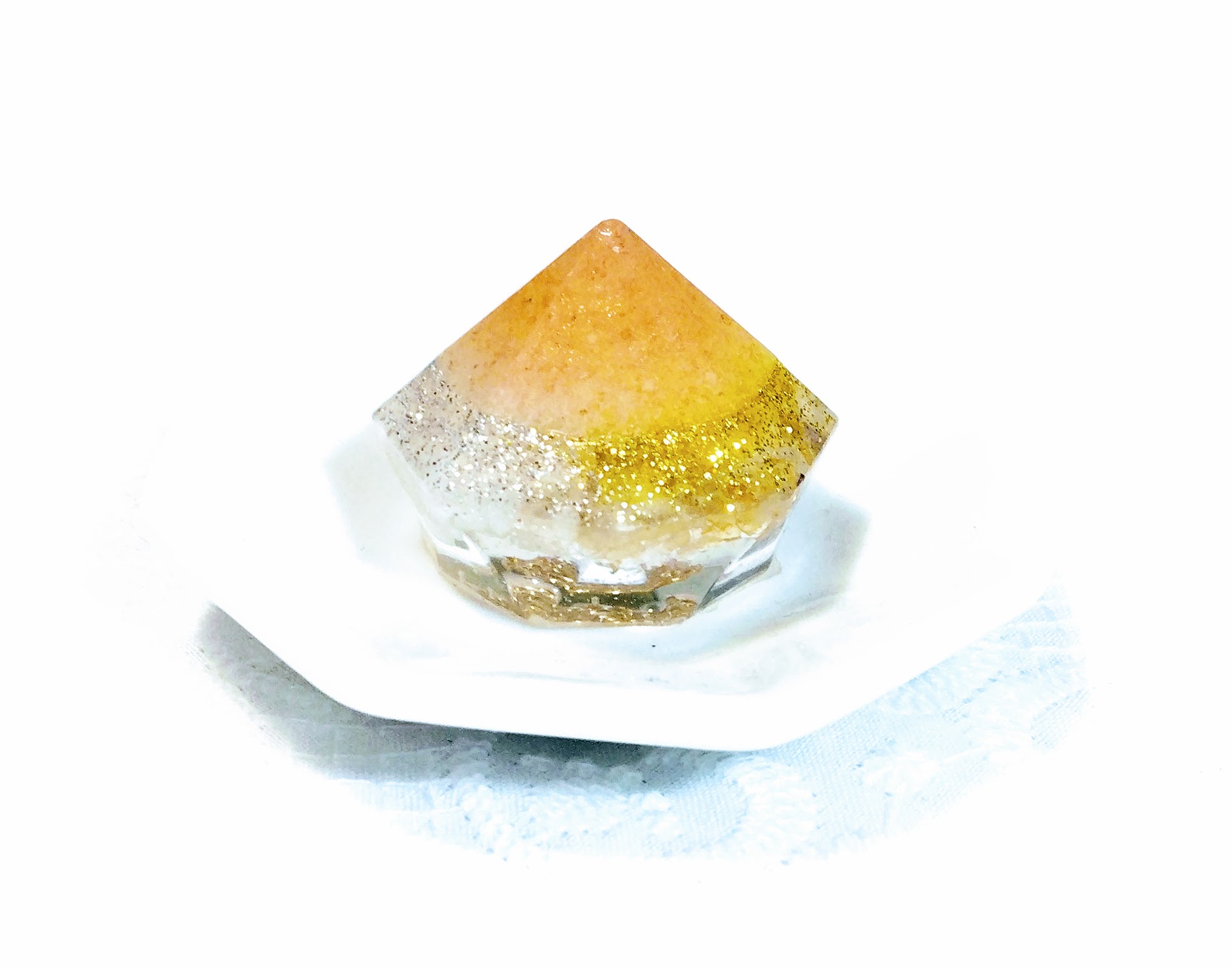 ヒマラヤ岩塩の盛り塩とクリスタルを合わせて、縁起の良い八角すいの小さなお守りに仕上げました。
