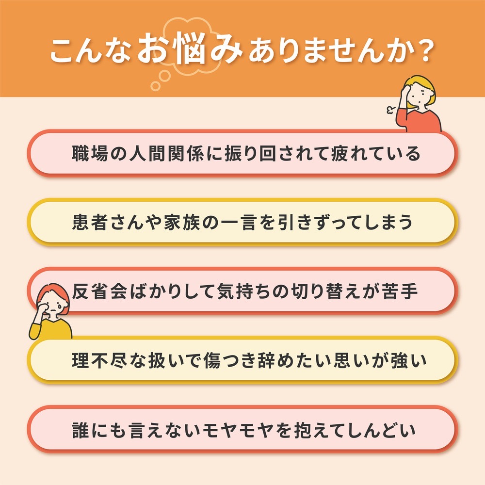 ・医療・介護現場で働く方の悩みに特化した内容です。