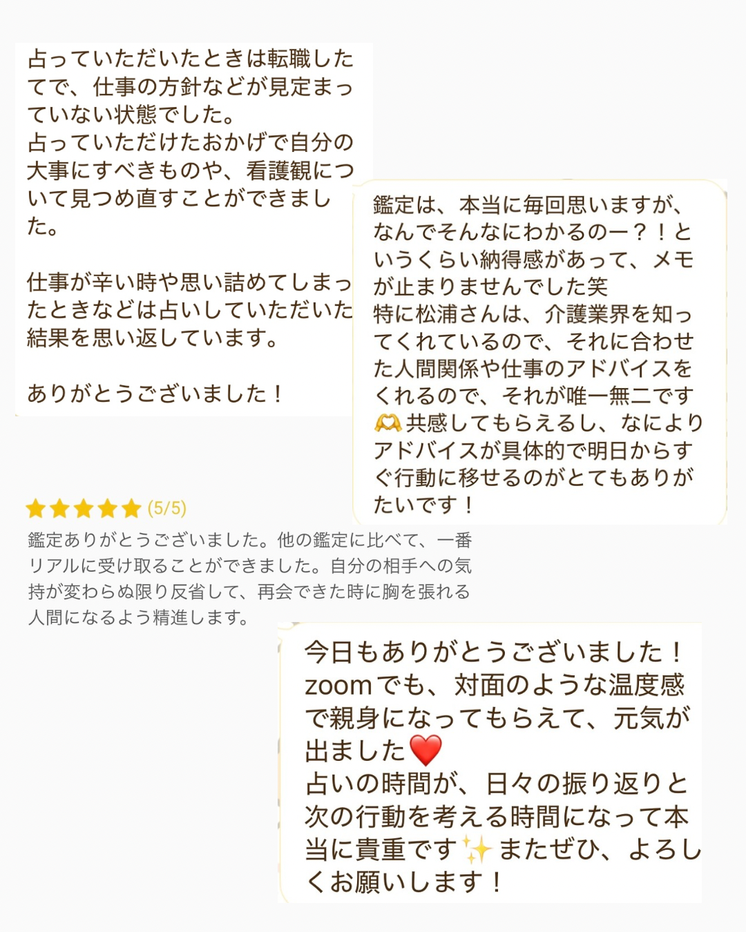 ・国家資格保有の看護師のため、スピリチュアルに寄りすぎない鑑定ができます