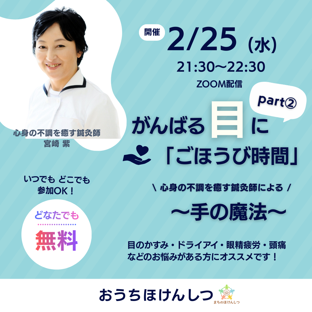 【おうちほけんしつ】ととのえROOM 「がんばる目に、ごほうび時間」② 心身の不調を癒すスピリチュアル鍼灸師による手の魔法