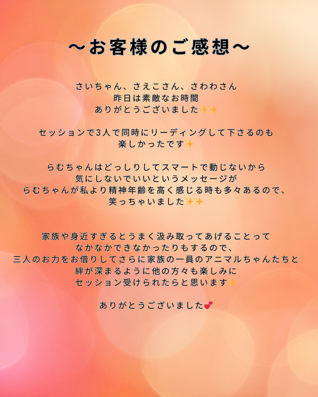 絆が深まるように他の方々も楽しみにセッション受けられたらと思います。