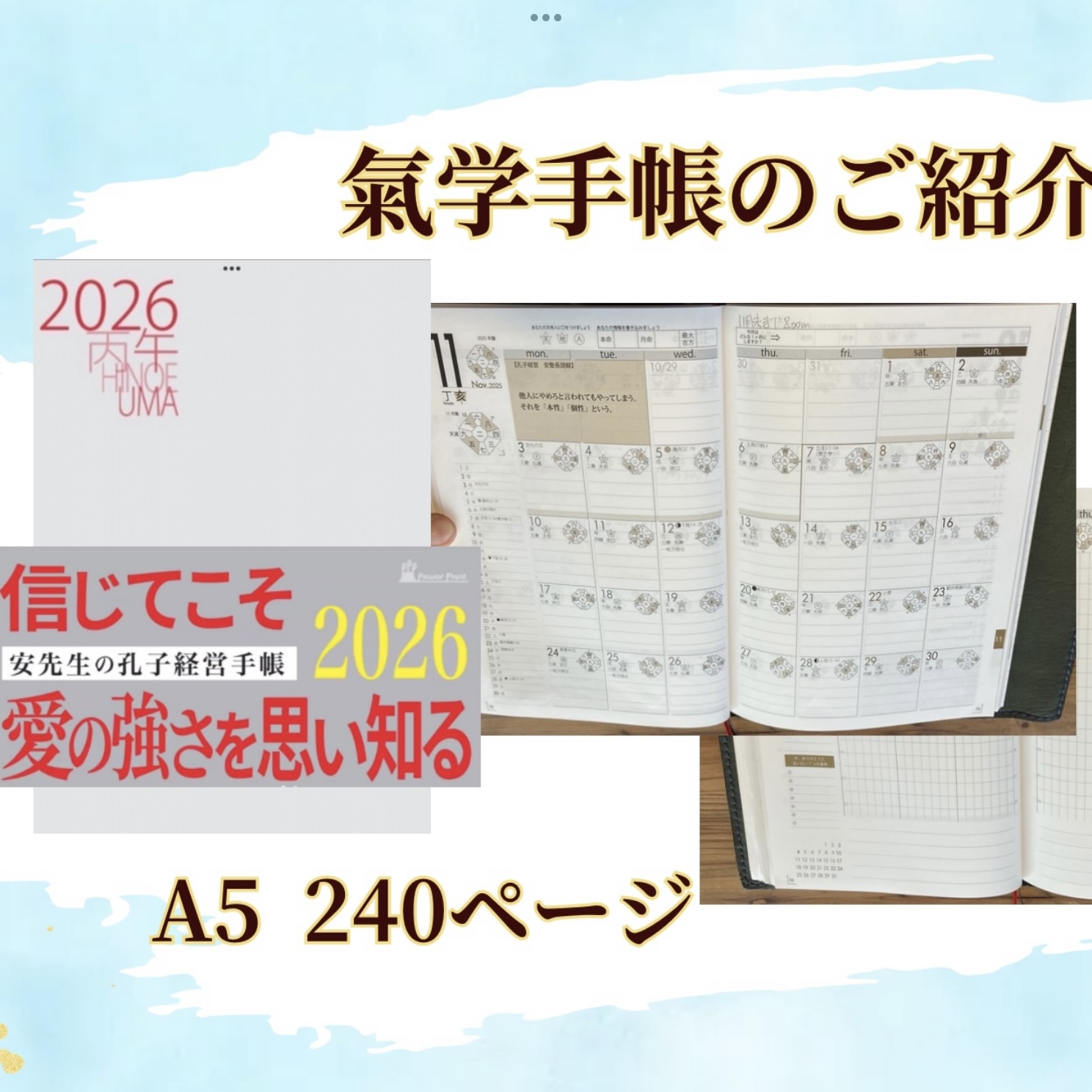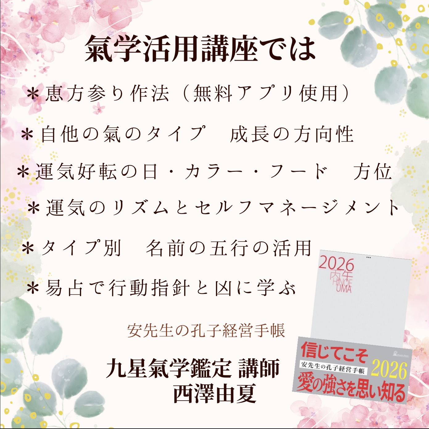 氣学手帳(孔子経営手帳)を別途購入して頂き zoomにて活用方法をお伝えします。
