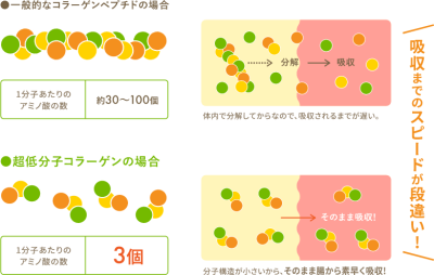 コラーゲン3000個のアミノ酸をたった3個に低分子化し、