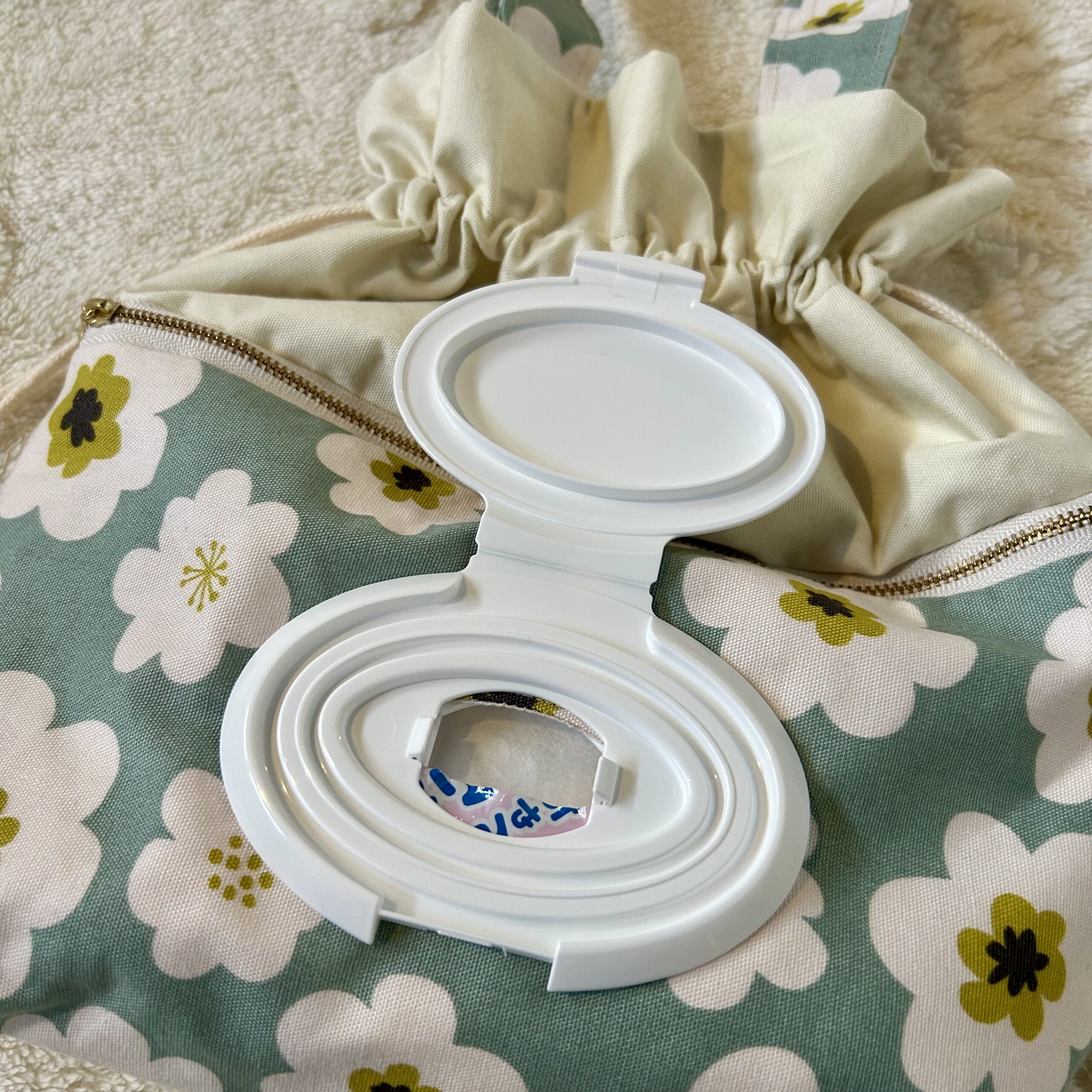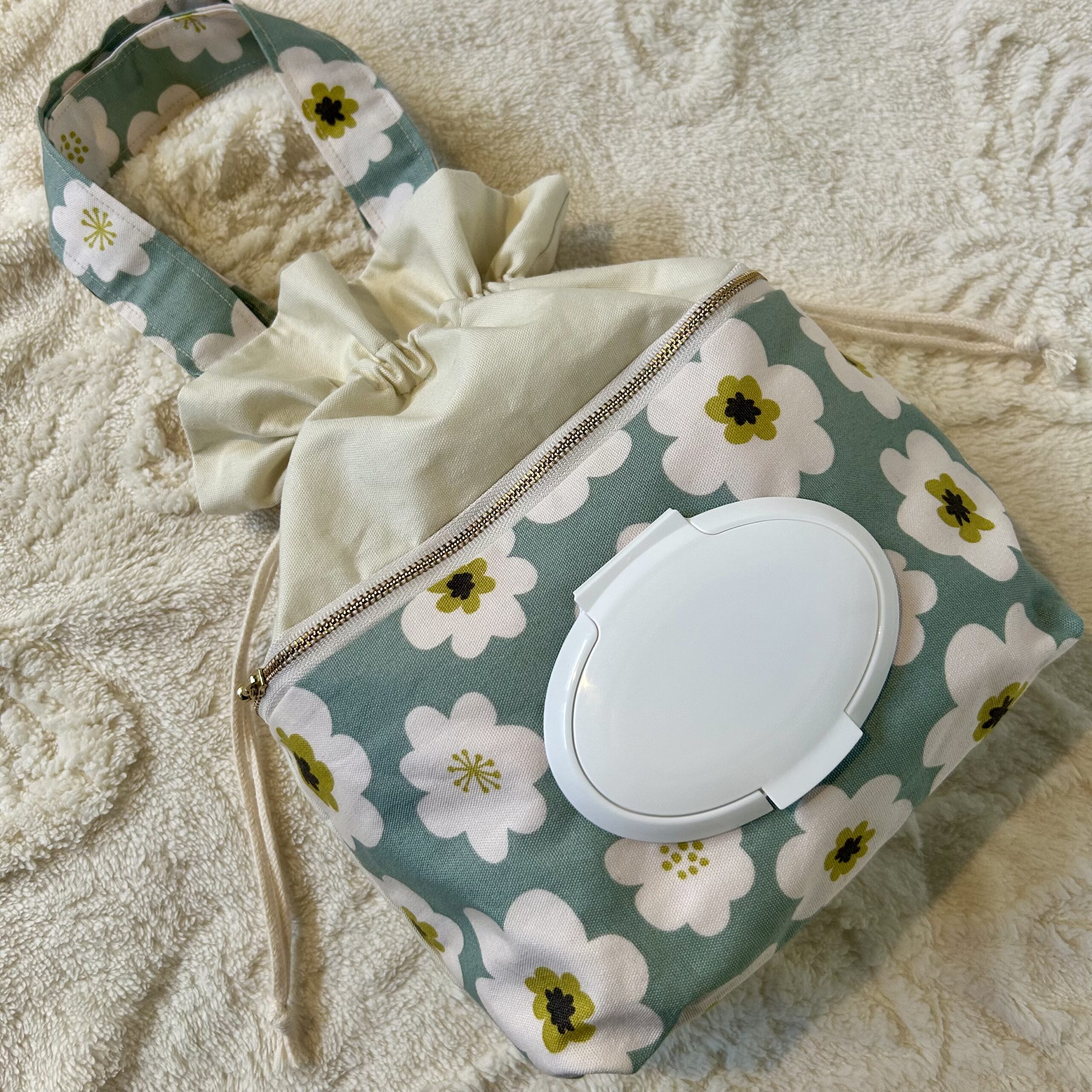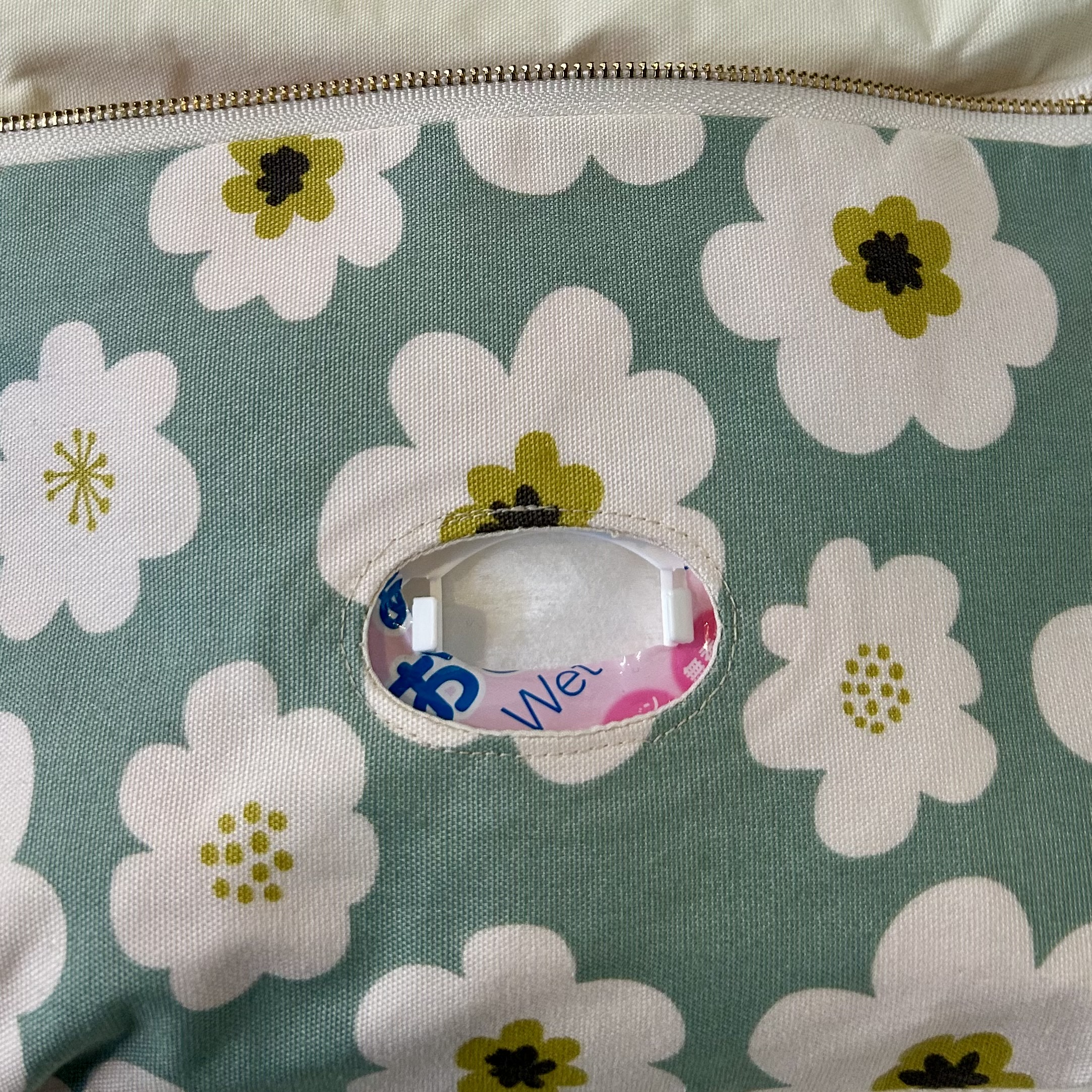 ウェットティッシュ専用のポケットが付いているので、ワンタッチで取り出すことができて便利です^ ^