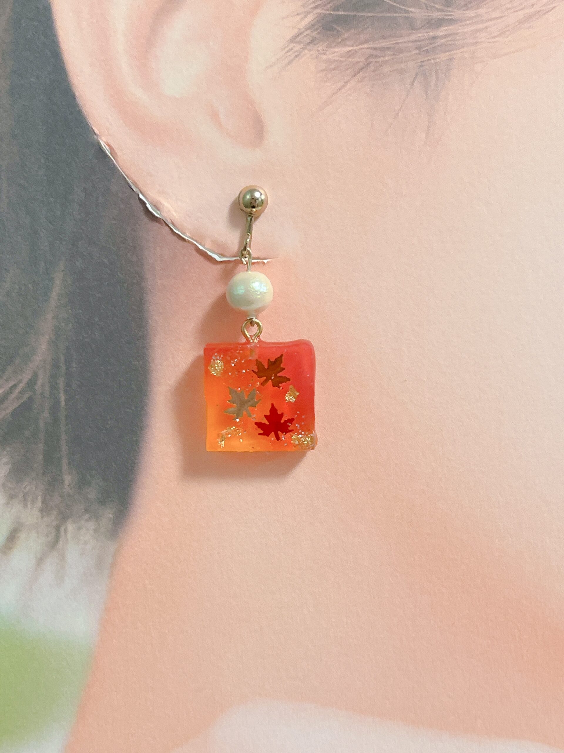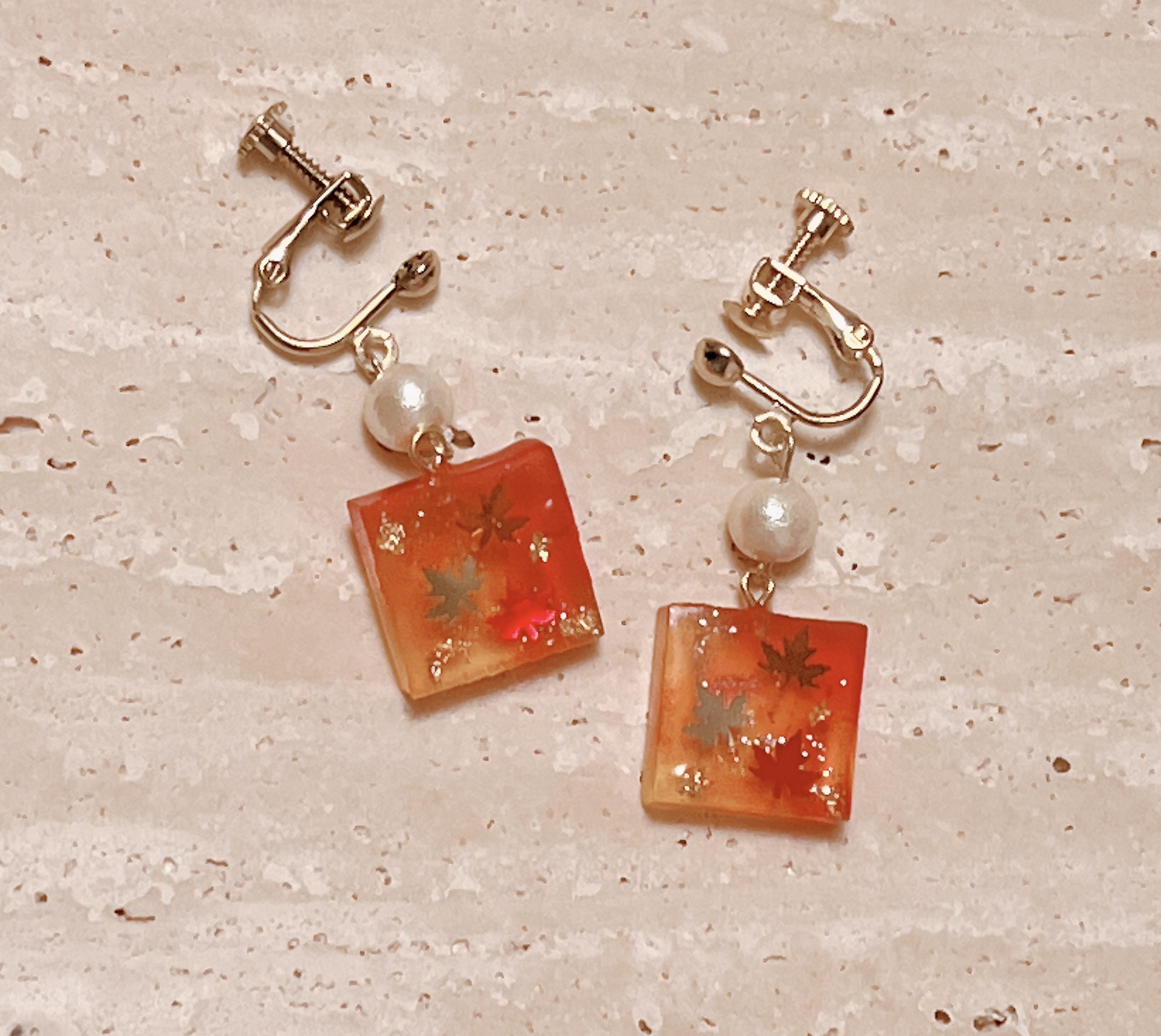 紅葉パーツ、金箔、銀ラメのラインをギュッと閉じ込めております。
