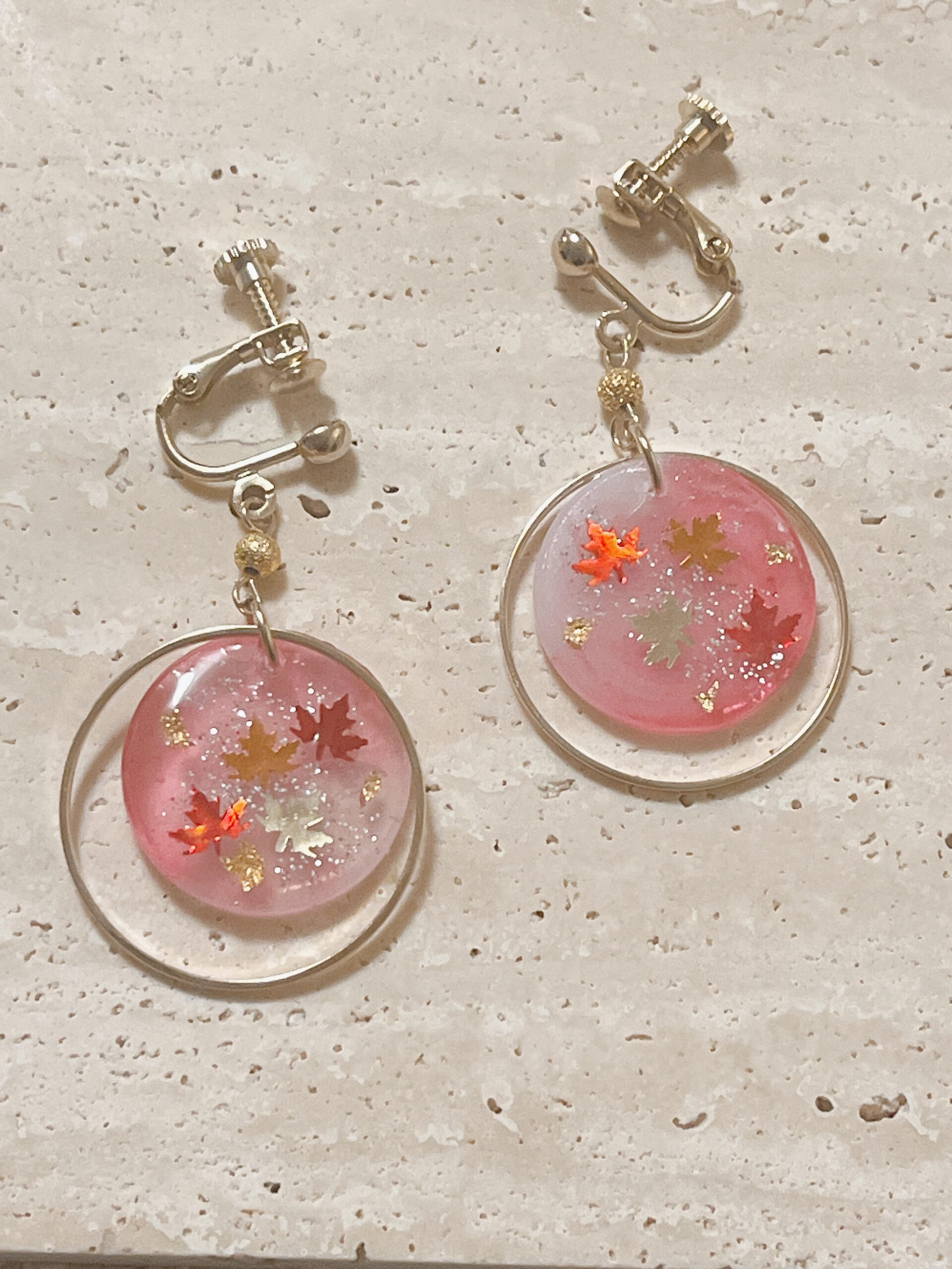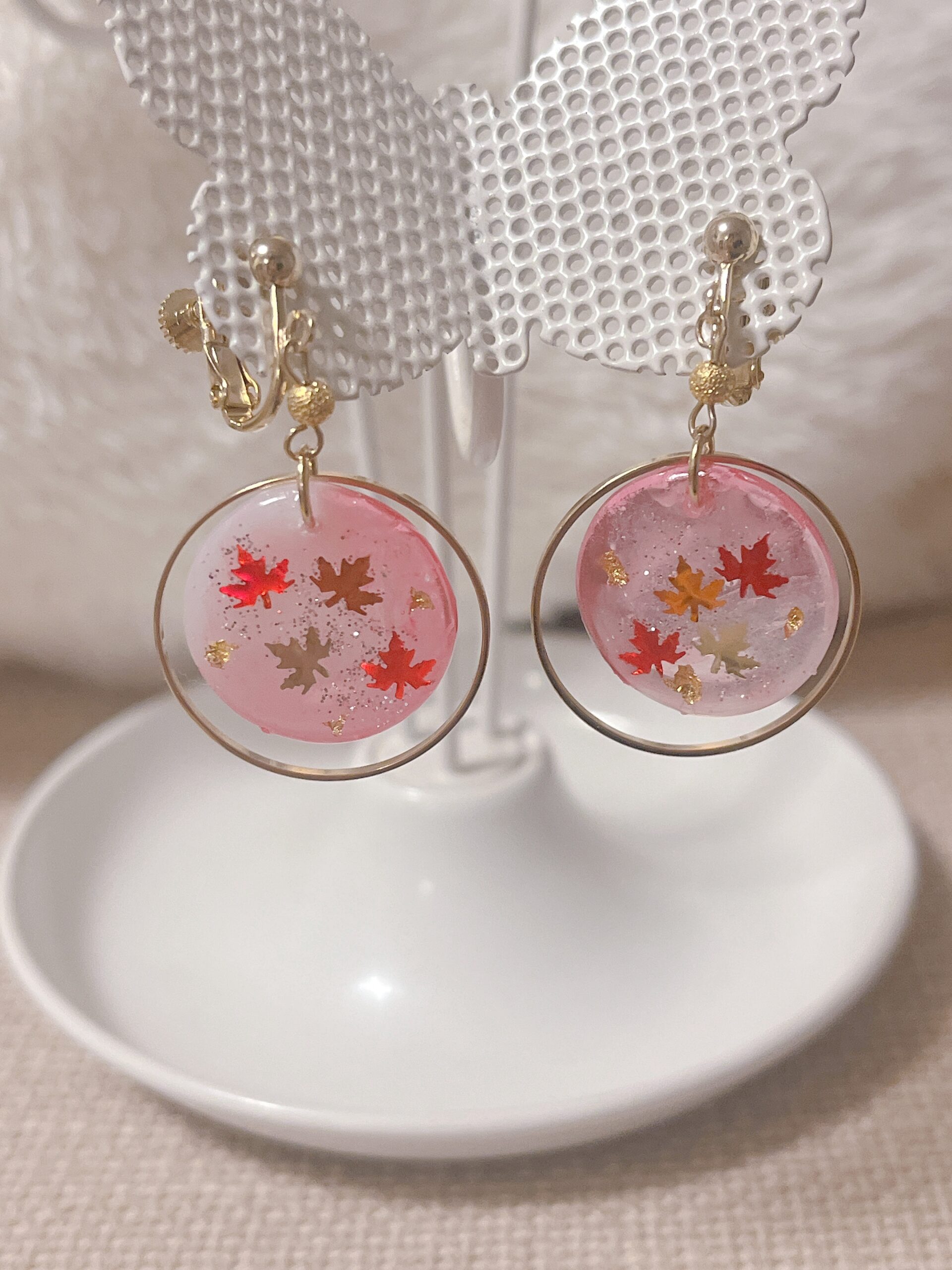 紅葉パーツ、金箔、銀ラメのラインを閉じ込めております。