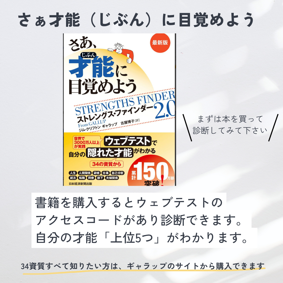 ◆才能を診断する費用(書籍代やギャラップサイトからの購入代)は、価格に含まれていません。