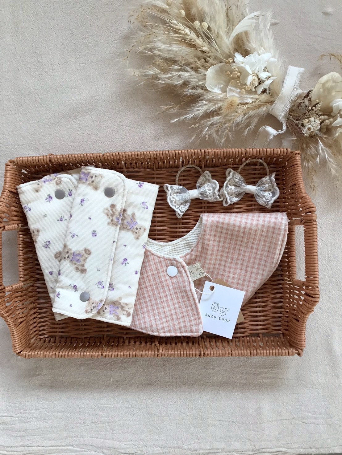 韓国生地/ Gift Box/スタイ/よだれカバー/ヘアゴム