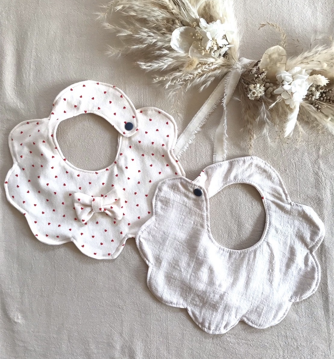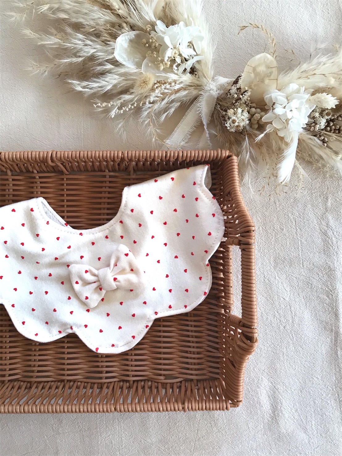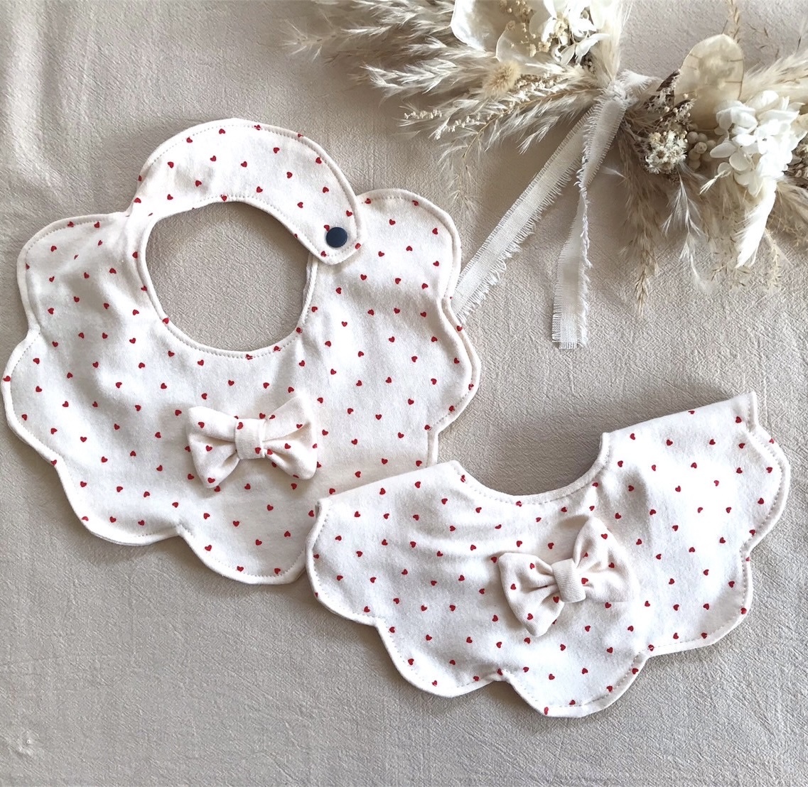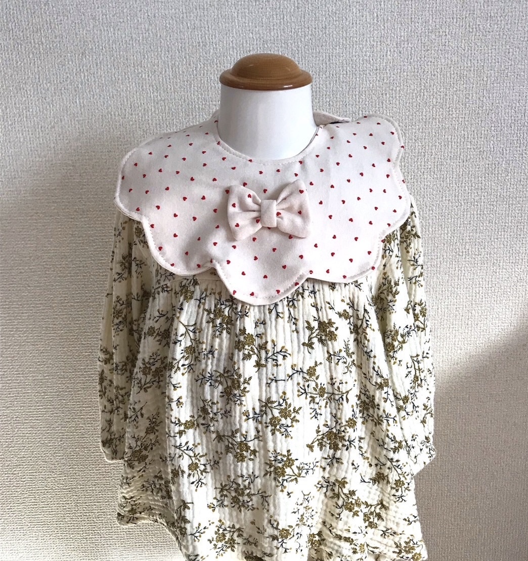 韓国生地/スムースニット/ハート柄/リボン付きもくもくスタイ