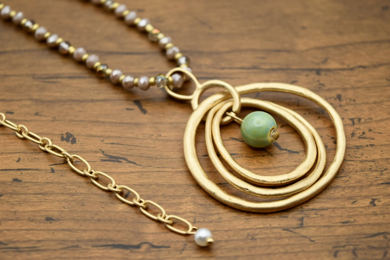 ・真鍮の柔らかな質感と、翡翠の落ち着いたグリーンの組み合わせ
