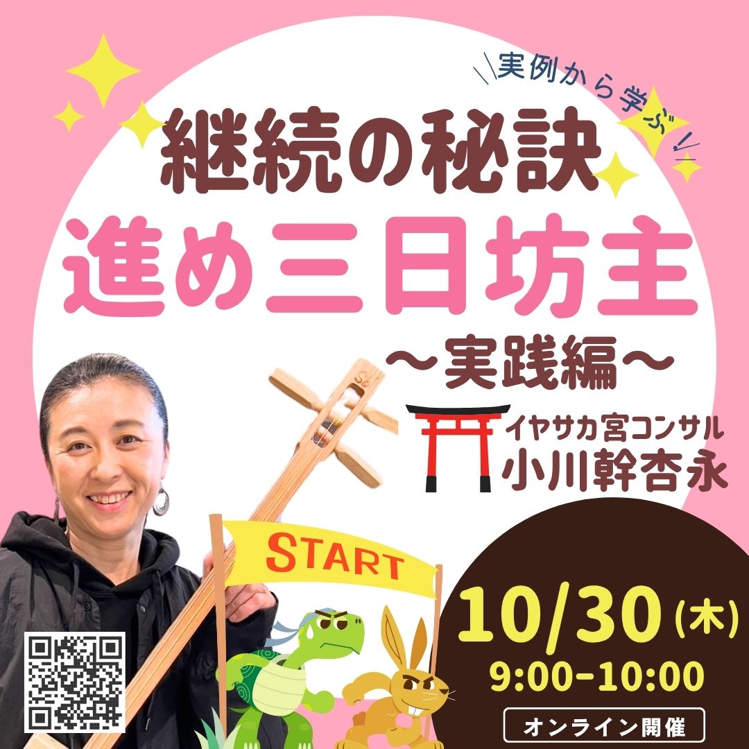 ✨継続の秘訣✨進め三日坊主 ~実践編~【10/30(木)9時~10時】