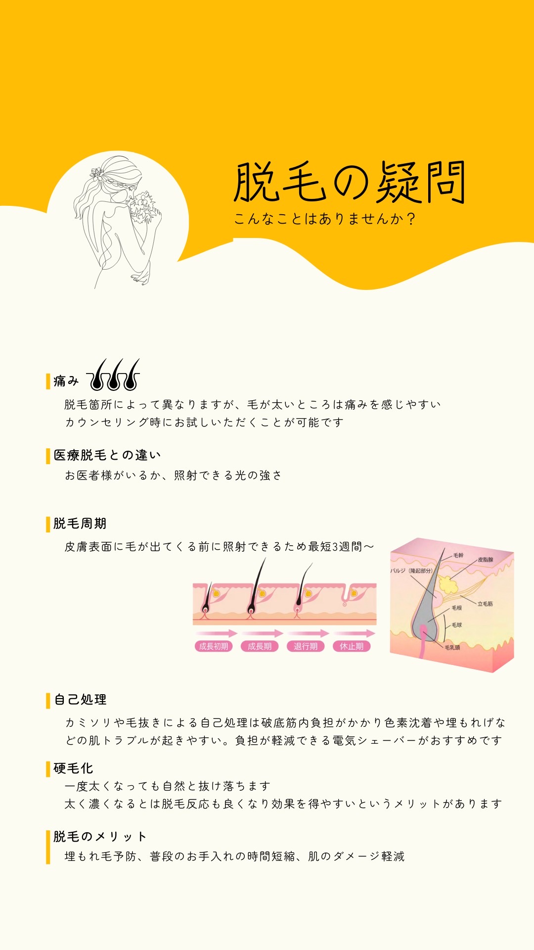 昔の脱毛と今の脱毛の違いや、その他、脱毛の種類をお伝えします。