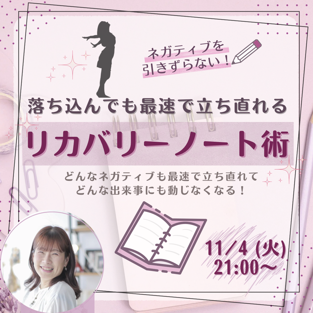 ネガティブを引きずらない!落ち込んでも最速で立ち直れるリカバリノート術【11/4(火) 21時~22時】