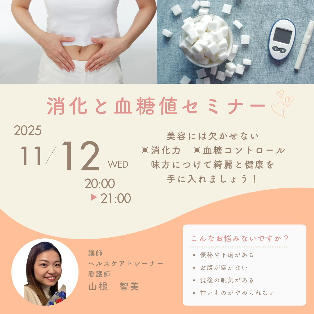 この講座では、食べたものがどのように消化・吸収され身体のエネルギーとなるのか、日常生活の過ごし方が血糖値や体のコンディション、美容にどう影響するのかを分かりやすく解説します。