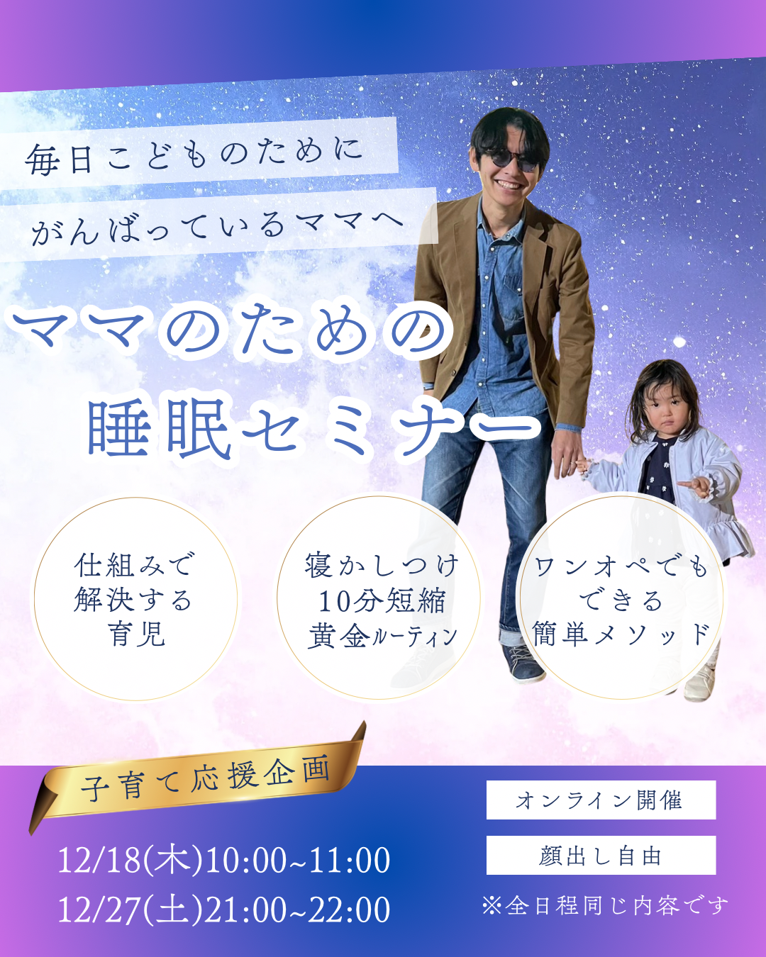 寝かしつけが10分早く終わると、家庭が幸せになる!ママのための睡眠×心の余裕セミナー【12月27日21:00〜】