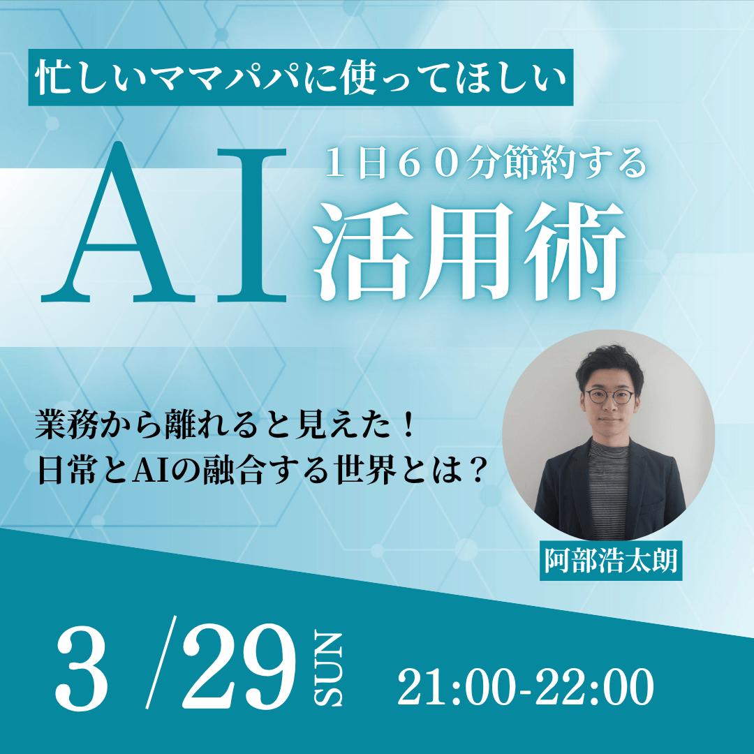 忙しいママパパに使って欲しい 1日60分節約するAI活用術【3月29日21:00〜】