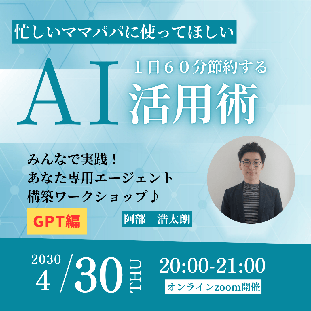 忙しいママパパに使って欲しい 1日60分節約するAI活用術 GPT編【4月30日㈭20:00〜】